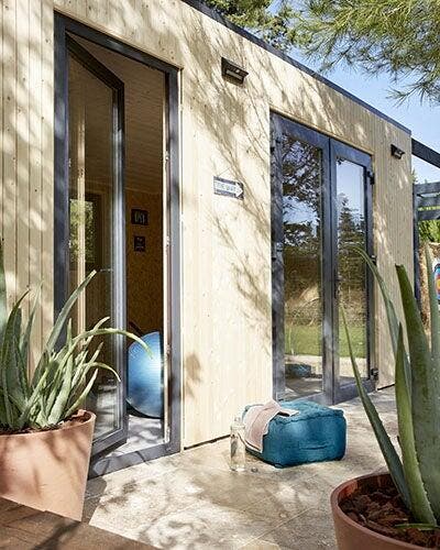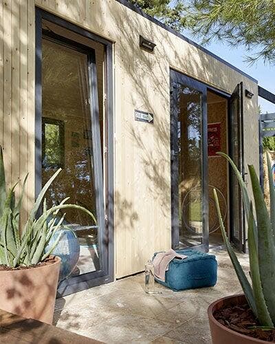On opte pour un modèle de studio équipé de plusieurs ouvertures : à la fois pour profiter de la lumière et de la vue sur le jardin mais aussi pour pouvoir aérer facilement.