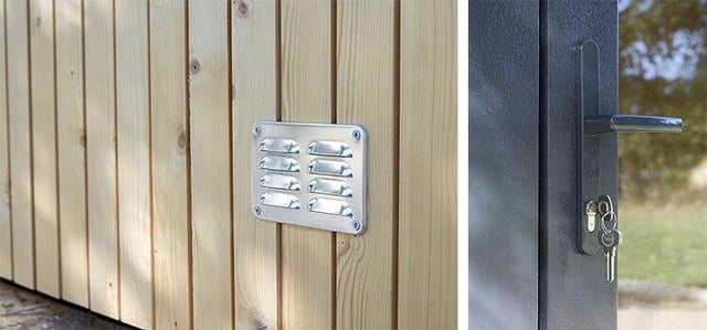 Dernier avantage du studio prêt-à-monter : tout est prévu et inclus, de la grille de ventilation à la clé permettant de verrouiller la porte !