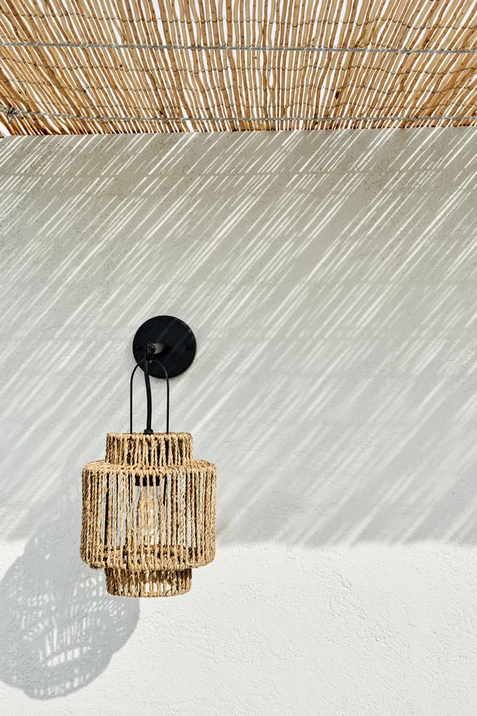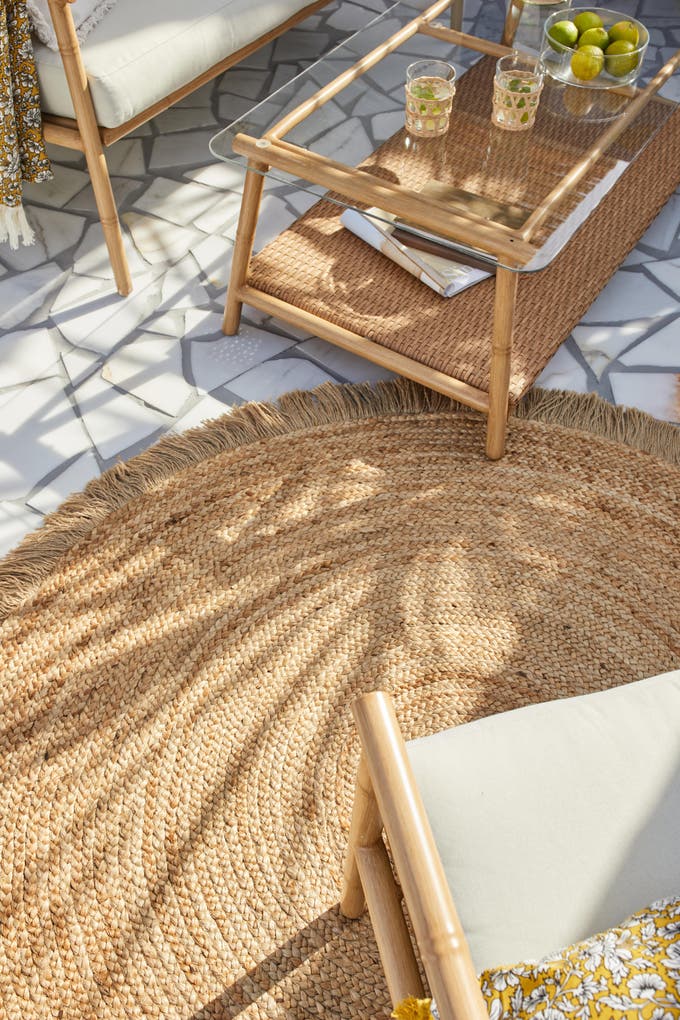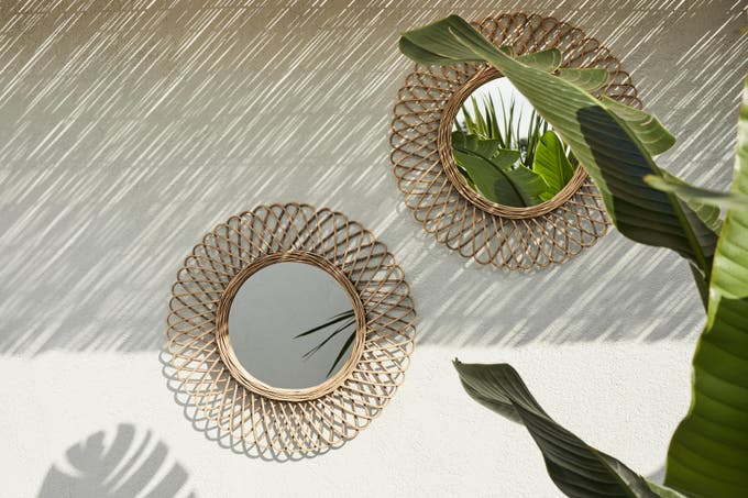Pour la note chaleureuse et artisanale de la déco, on pense évidemment au bois et aux fibres naturelles. Les canisses en osier donnent le ton. Pour le reste, on préfère des formes rondes qui ajoutent de la douceur : un tapis en jute, des miroirs entourés de rotin et des luminaires en jacinthe d’eau tressée.