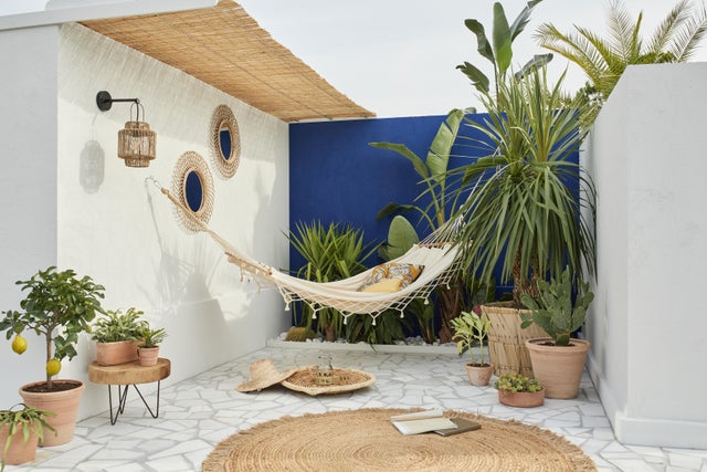 Vous préférez le mode farniente ? Optez pour un hamac. Au cœur de cette ambiance exotique, il se fond dans le décor du patio transformé en lieu idéal pour faire la sieste !