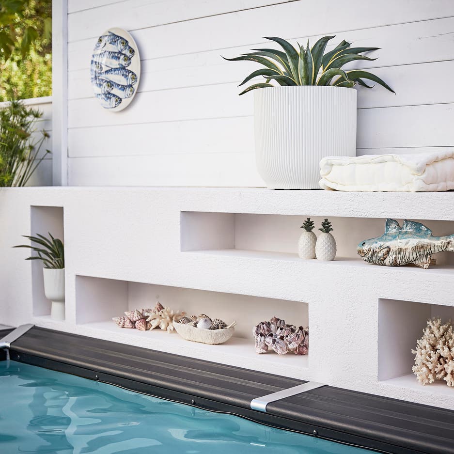 Dans le muret maçonné qui borde la piscine, on crée des niches de dimensions variées.
