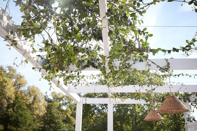 Il est abrité par une pergola sur mesure façon tonnelle. Agrémentée de plantes grimpantes, elle ombrage avec légèreté.