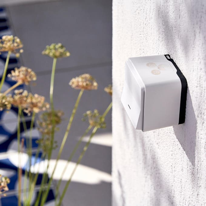 Une applique murale fixée sur le mur de clôture éclaire la zone.