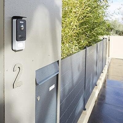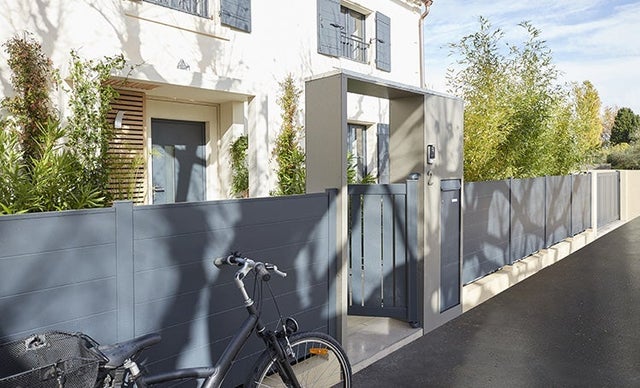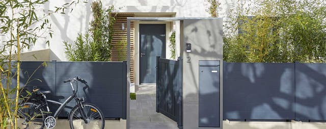 La sécurité est assurée par un visiophone qui permet de contrôler les allées et venues. La bonne idée qui facilite la vie (et celle du facteur…) : une grande boîte à colis, parfaitement intégrée dans l’encadrement du portillon.