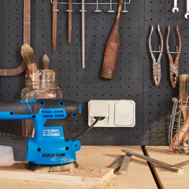 Indispensable, la double prise avec terre étanche pour brancher la ponceuse ou la scie sauteuse.