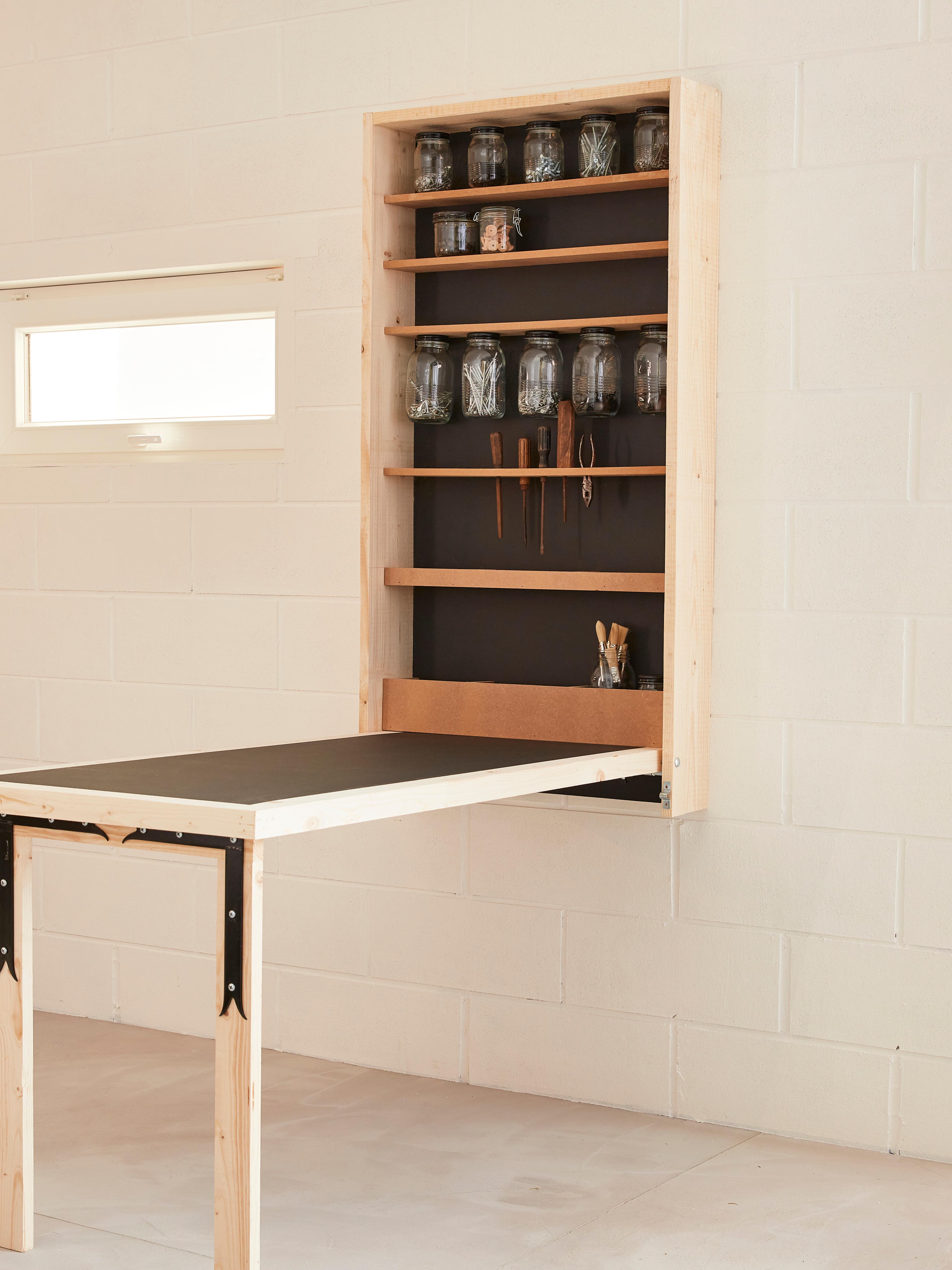 - Un établi d’appoint DIY avec rangements intégrés.