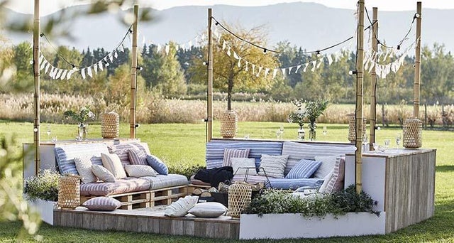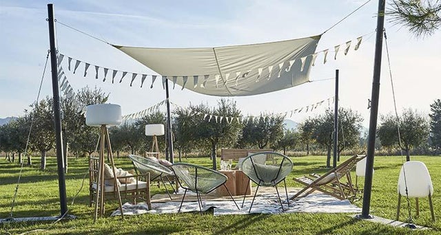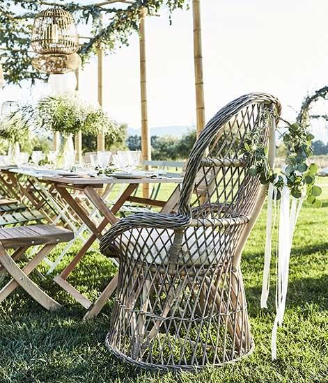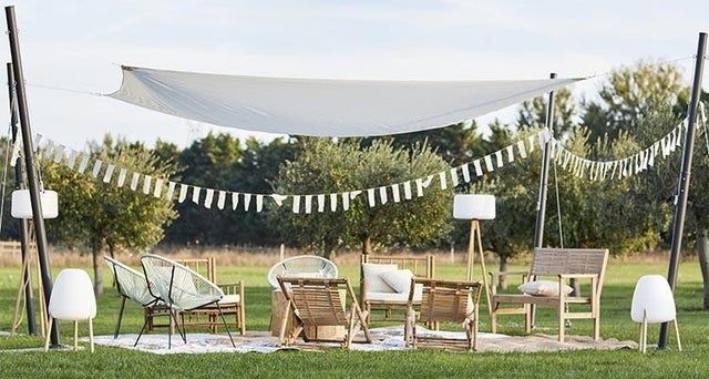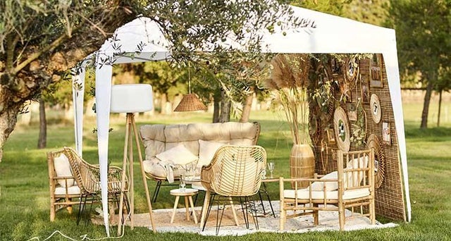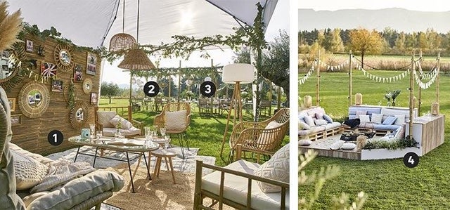 On se sert de son mobilier de jardin mais on peut également, pour quelques heures, extraire de la maison les chaises de la salle à manger ou un fauteuil en rotin.