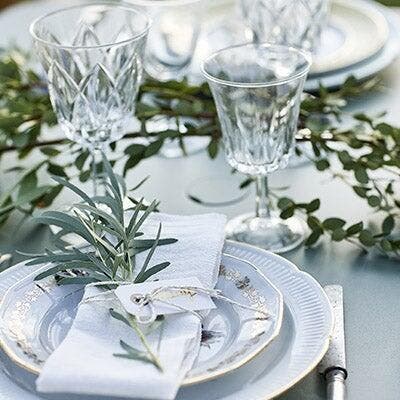 Côté table, on mixe jolie vaisselle et feuillage pour une ambiance alliant le chic au champêtre.