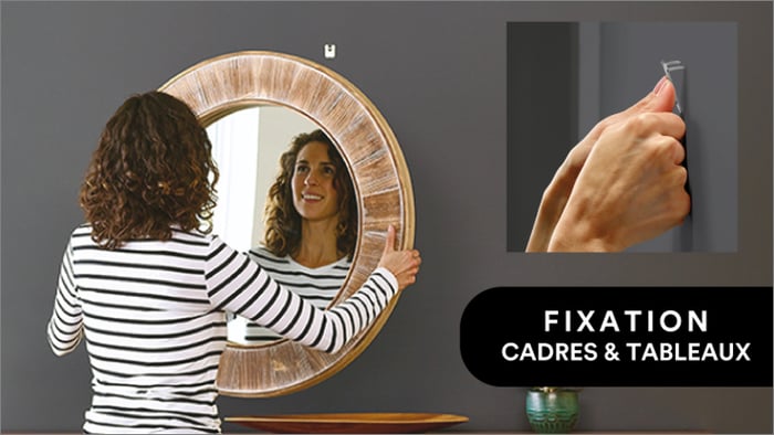 Pour vos projets de fixation d'objets lourds (tableaux, miroirs, décorations), faites confiance au crochet pour tableaux spécial plaque de plâtre 3M CLAW™ pouvant supporter jusqu'à 30 kg. Les griffes en acier trempé s'accrochent fermement dans la plaque de plâtre. Il vous suffit de bien appuyer avec vos pouces puis d'accrocher et c'est terminé.