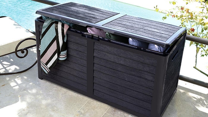 Pour profiter pleinement de votre terrasse ou de votre jardin, EDA a créé toute une gamme de produits pour vos aménagements extérieurs : malles et coffres de rangement, dalles à clipser, pieds de parasols, lests en béton etc.