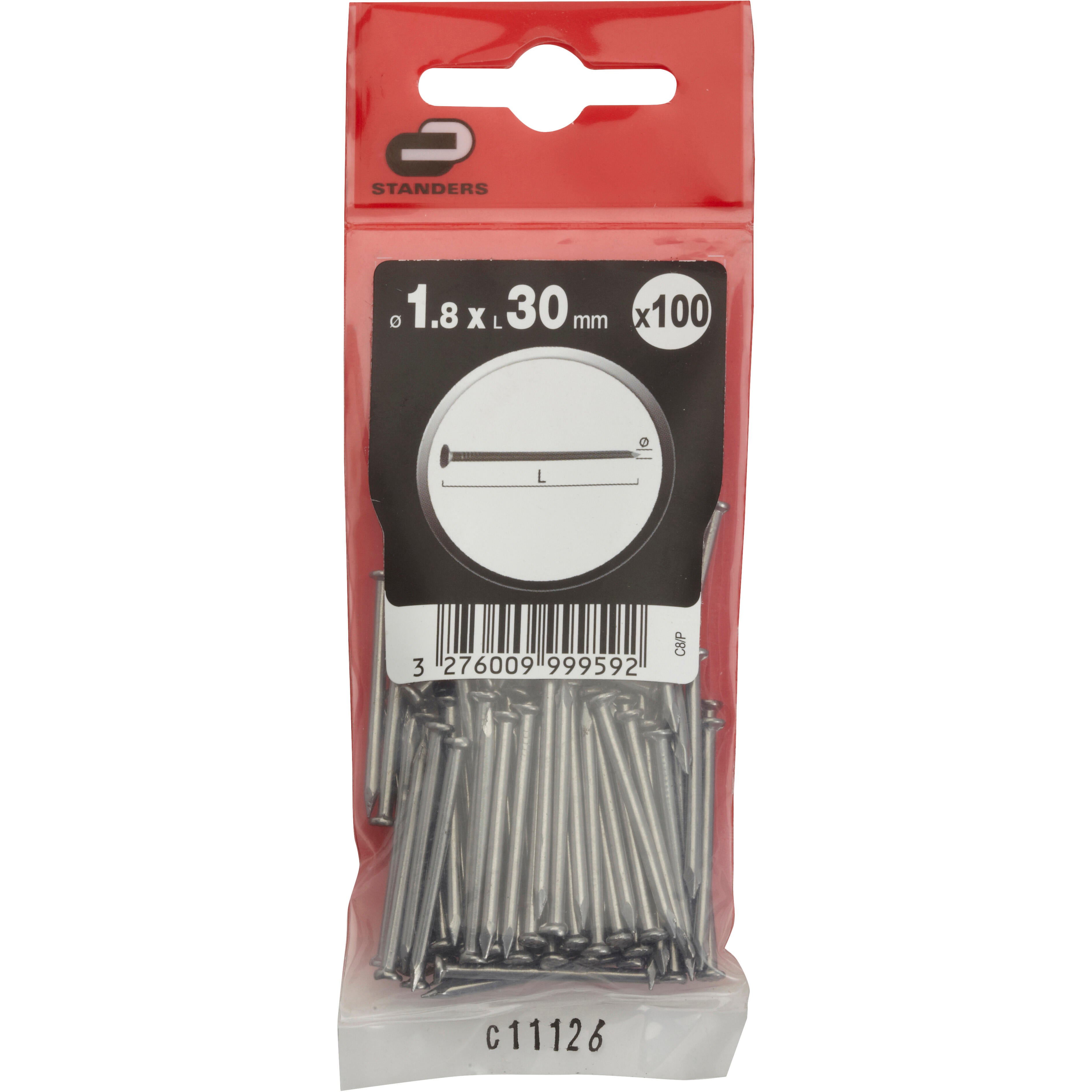 100 clous acier STANDERS tête plate, Ø1.8 x L.30 mm