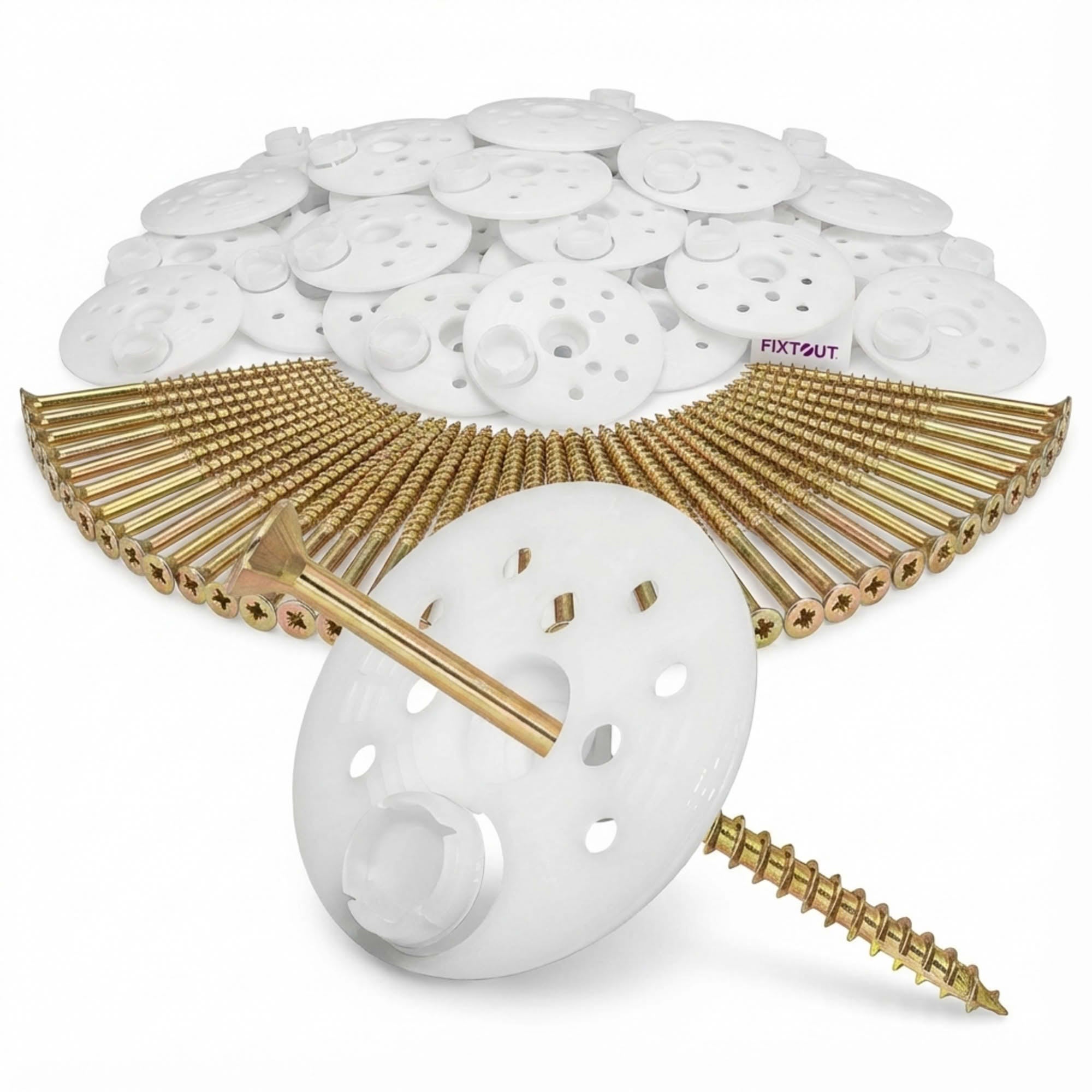 - 100 rondelles d'isolations D. 60 mm avec capuchon. Fixation d'isolants semi-rigides et rigides.