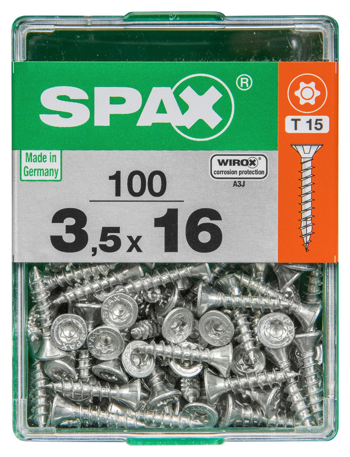 100 vis acier tête fraisée t-star+ SPAX, Ø3.5 x L.16 mm