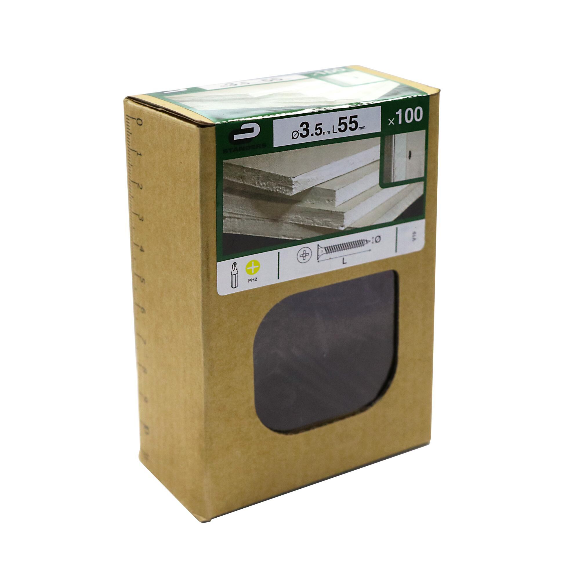 100 vis plaque de plâtre acier tête de trompette phillips STANDERS, Ø3.5xL.55mm