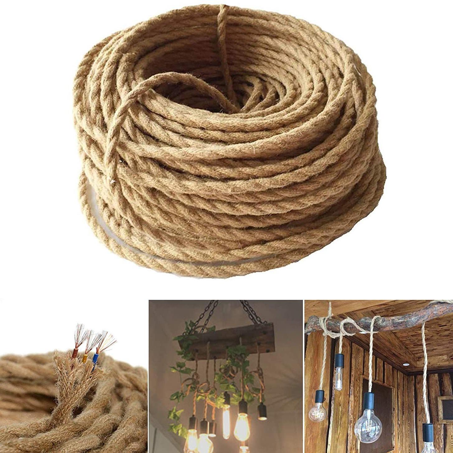 10m Fil électrique Corde, 2 Curs Linge de Cable d'éclairage de Corde Vintage Fil de cuivre recouvert Rétro Tressé Industriel Corde pour DIY Pendentif