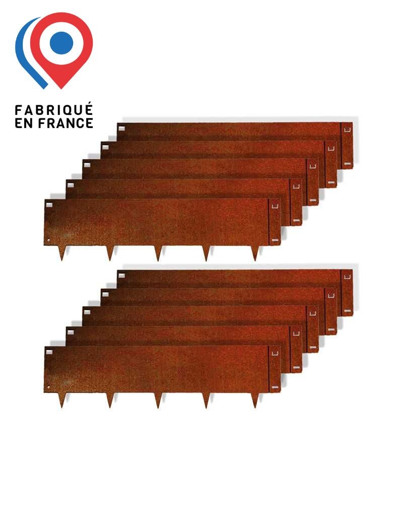 10pcs Bordure de Jardin Métal Acier Corten Brut 100x26,5cm épaisseur 1,5mm - madecoupesurmesure