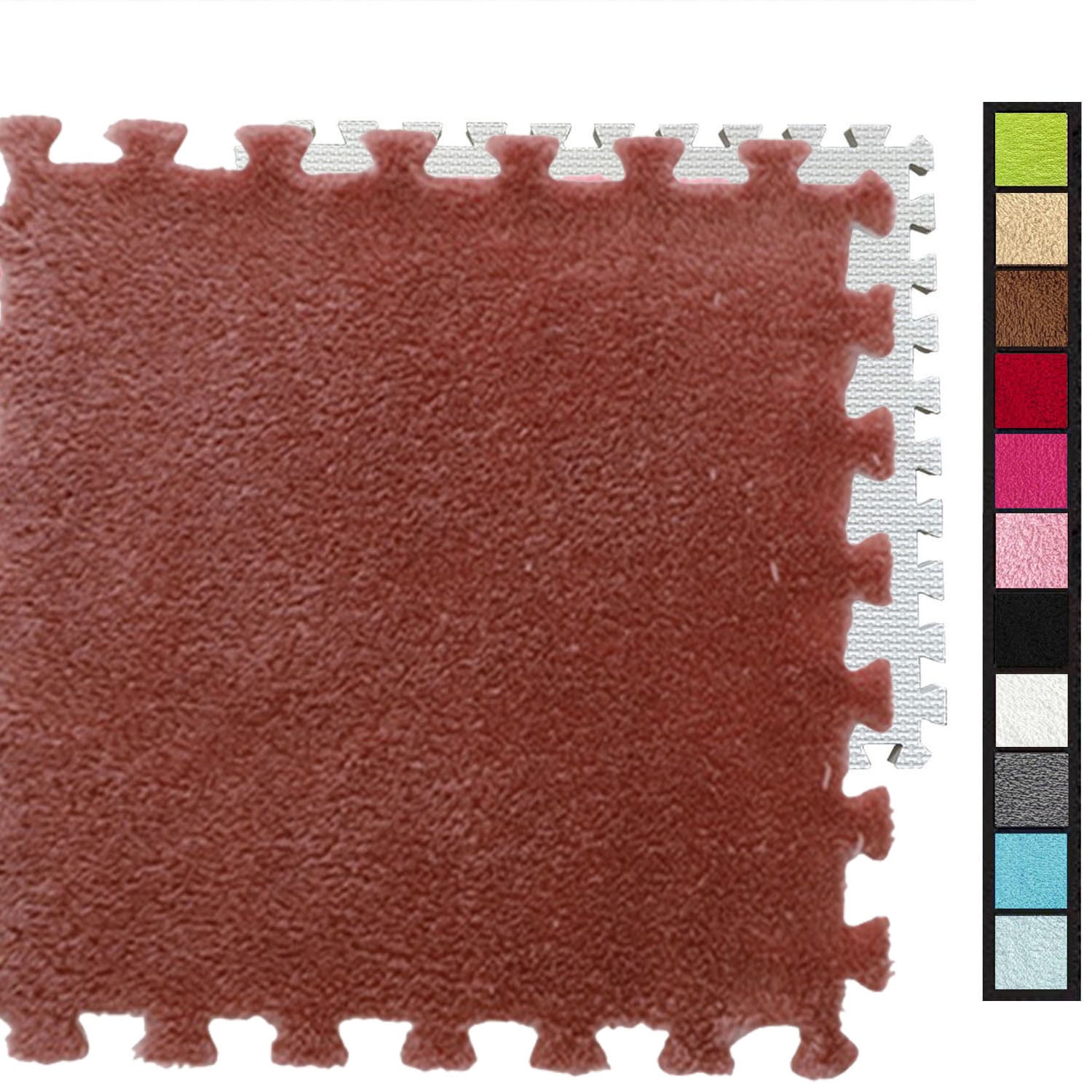 12 dalles de moquette emboîtables, tapis en mousse moelleuse 30 x 30 cm avec bordure, moquette pour chambre à coucher, tapis de salon (rouge)