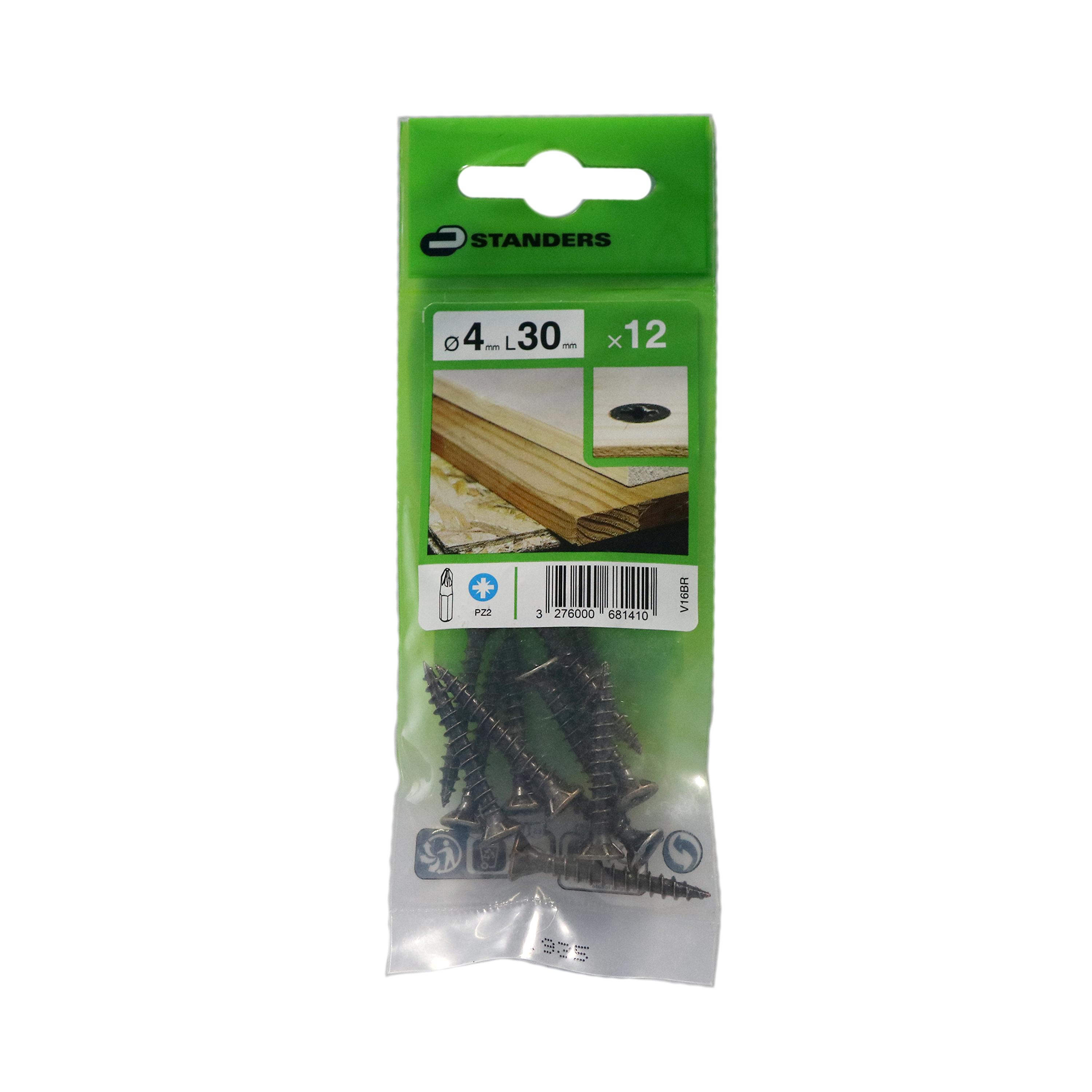 12 vis acier tête fraisée pozidriv STANDERS, Ø4 x L.30 mm