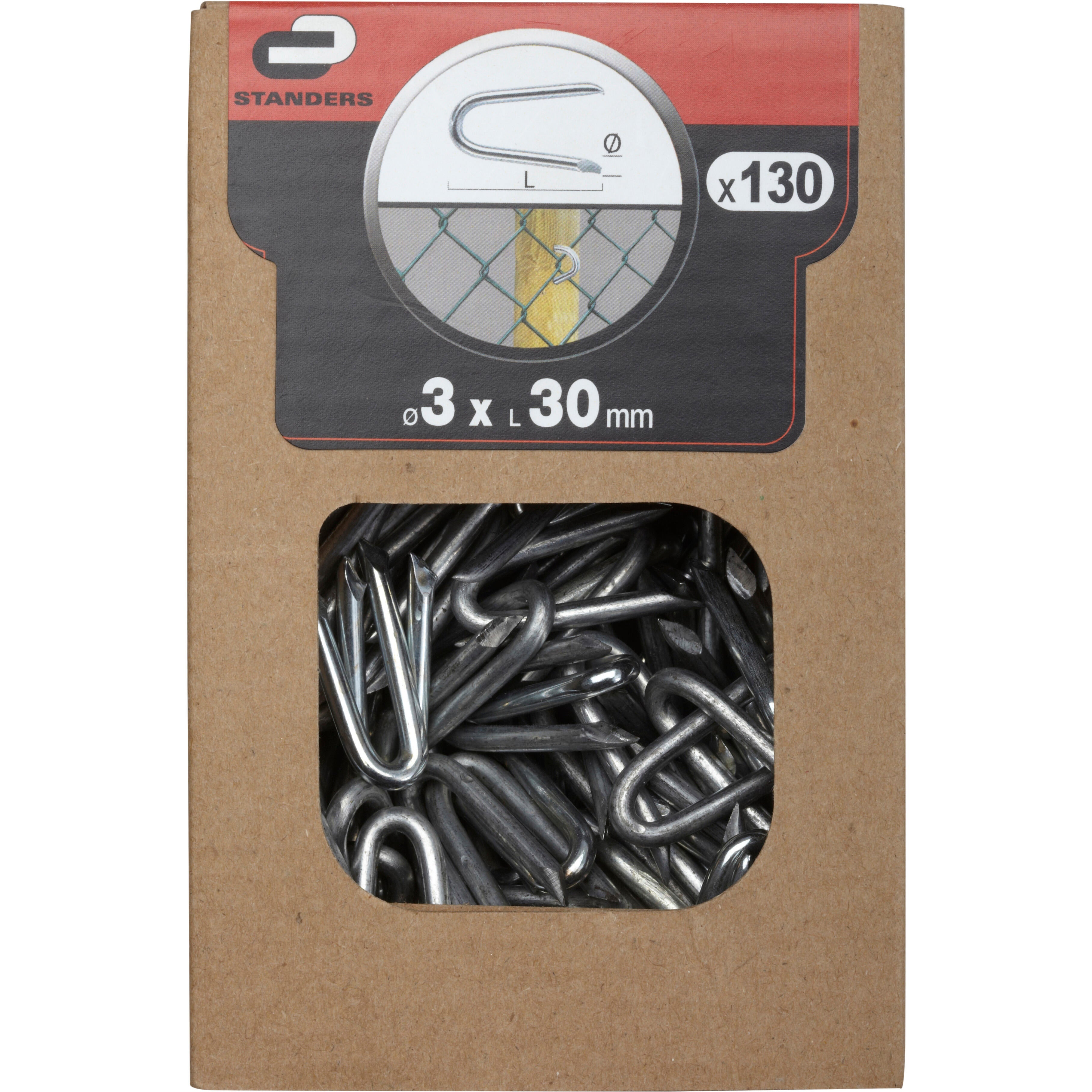 130 clous en forme de u acier, STANDERS, Diam.3 x L.30 mm