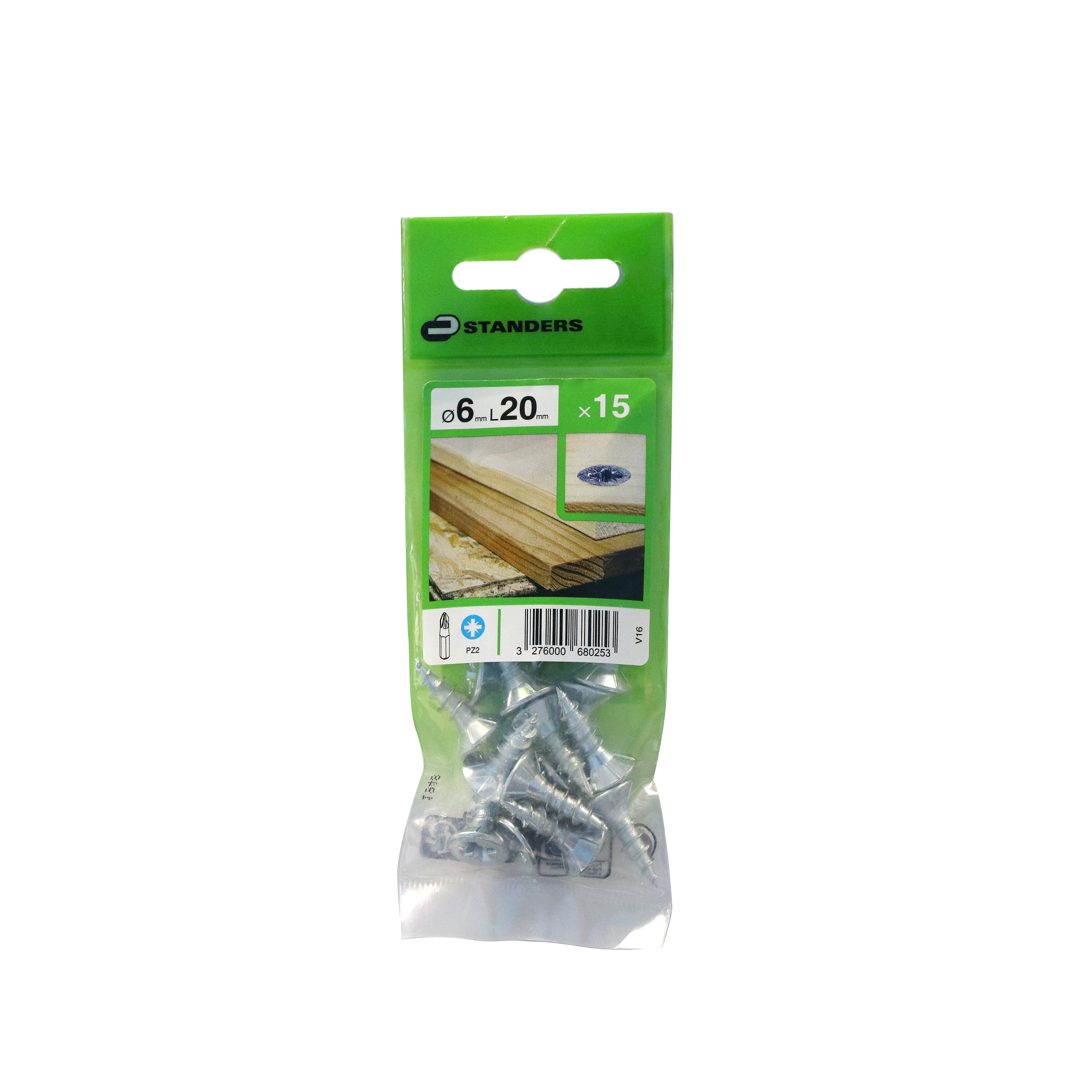15 vis acier tête fraisée pozidriv STANDERS, Ø6 x L.20 mm