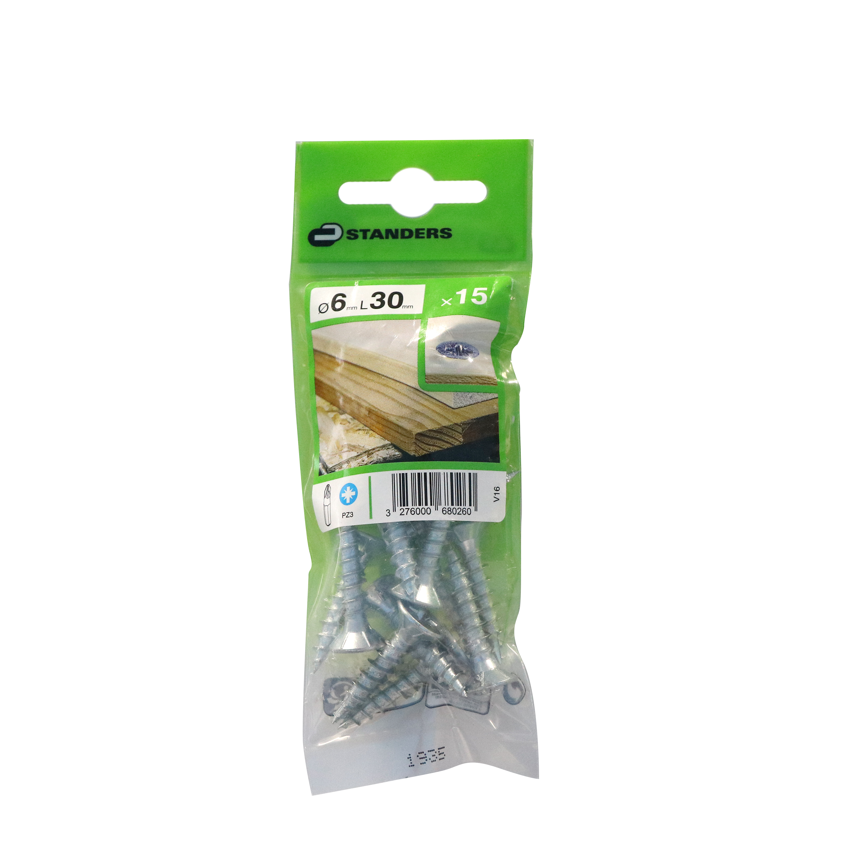 15 vis acier tête fraisée pozidriv STANDERS, Ø6 x L.30 mm