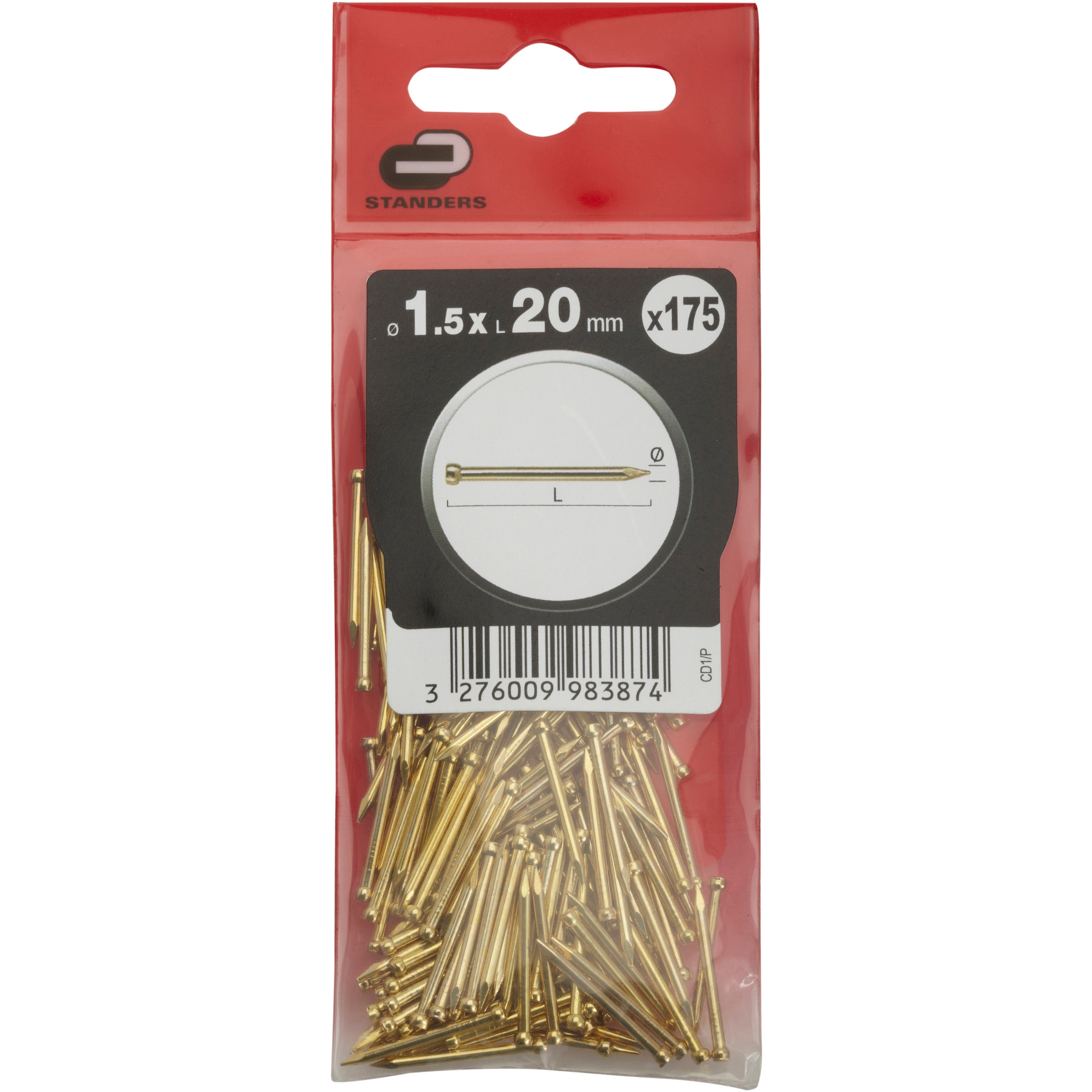 175 clous acier STANDERS tête homme, Ø1.5 x L.20 mm