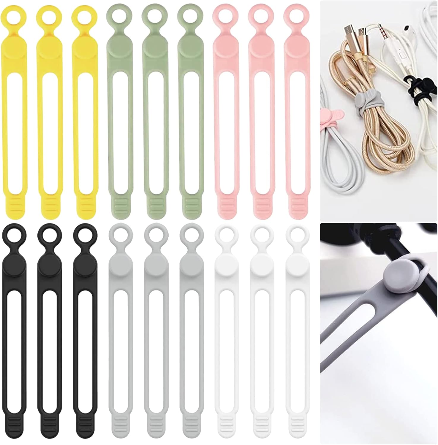 【Set de Serre-câbles Colorés】18 Serres câbles de silicone en petite taille, chaque câble d'attache mesure 10,6 cm de long avec 6 options de couleurs: Blanc, noir, rose, vert, jaune et gris, avec 3 pièces de chaque couleur, Gardez vos cordons, cordons, et chargeurs organisés et beaux.