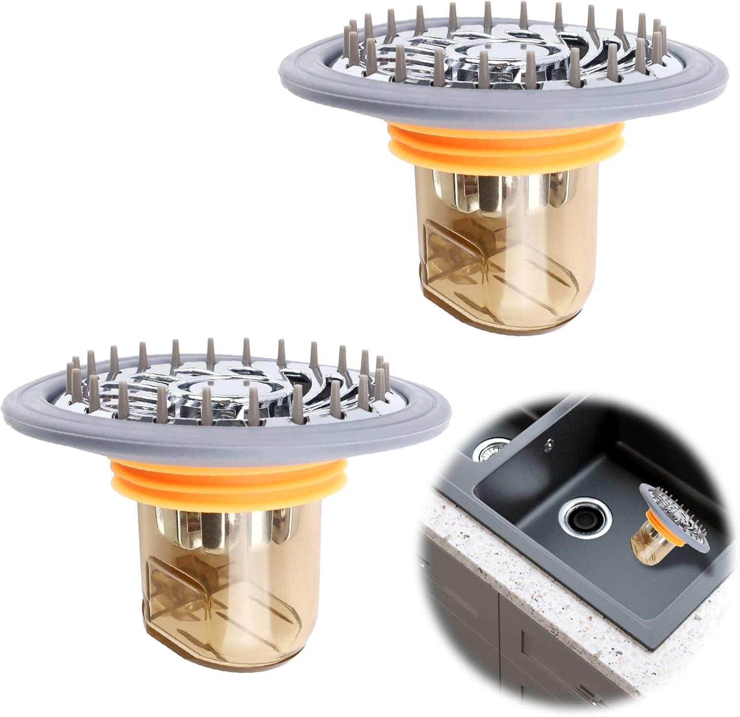 2 bouchons de douche anti-odeur - Siphon de sol avec filtre à cheveux pour douche - Convient aux trous de siphon de sol d'un diamètre de 32 à 45 mm