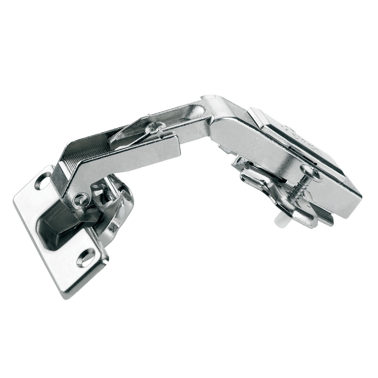 Pack de 2 charnières de meuble en acier nickelé. Réglable latéralement, en profondeur et en hauteur.