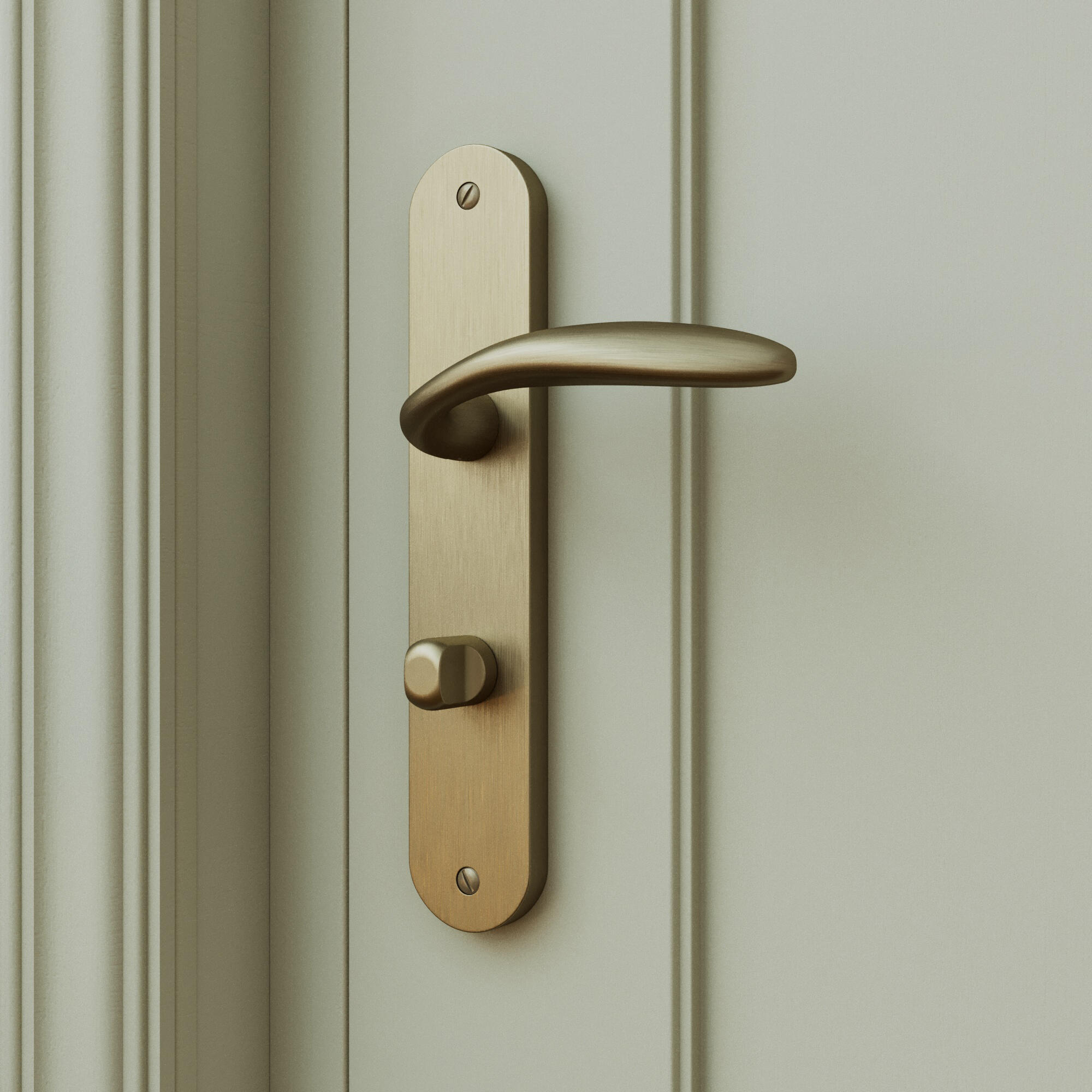2 poignées sur plaque à condamnation Agathe aluminium laiton mat, entraxe 195 mm