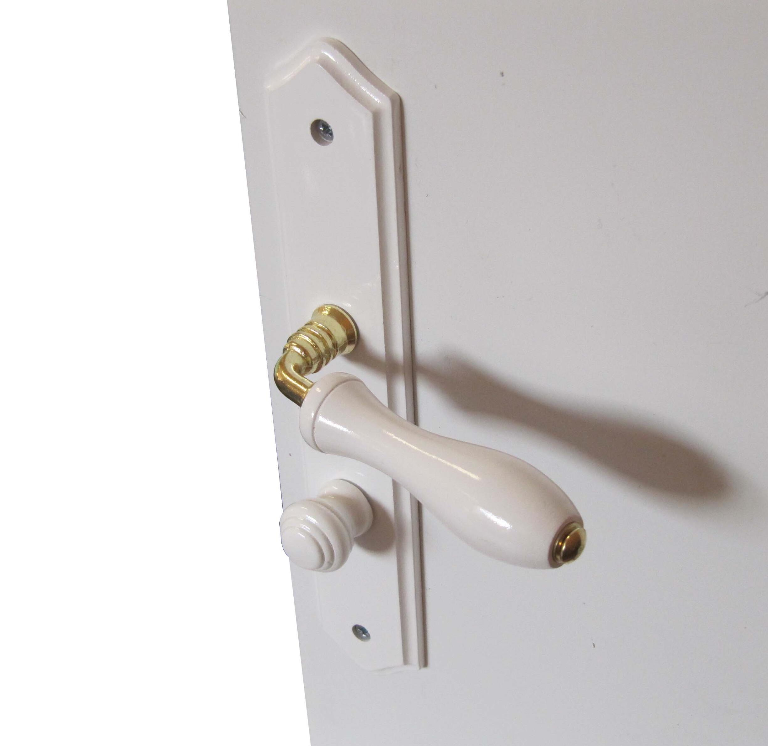 2 poignées sur plaque à condamnation bois blanc brillant, entraxe 195 mm