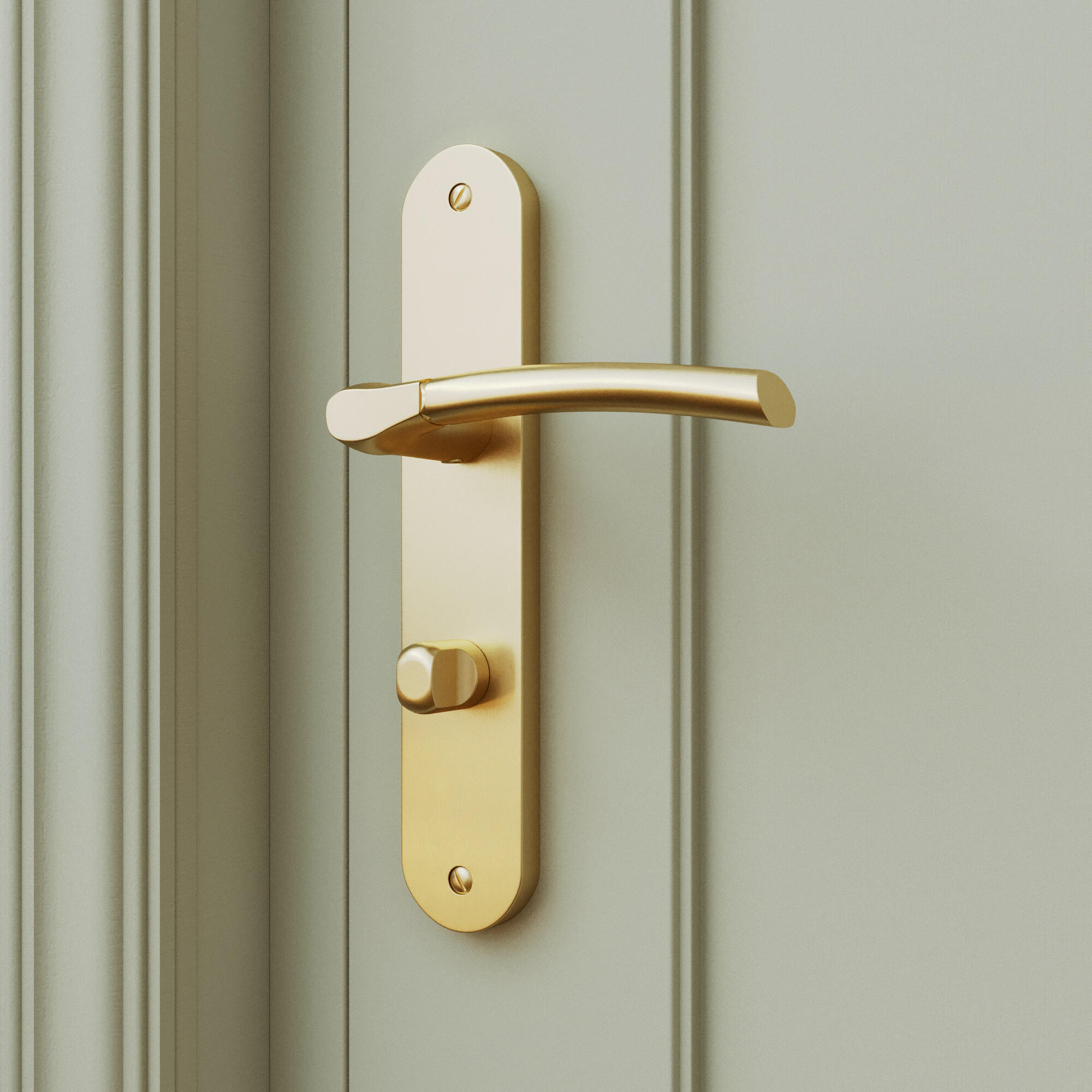 2 poignées sur plaque à condamnation Eina alu laiton brossé, entraxe 195 mm
