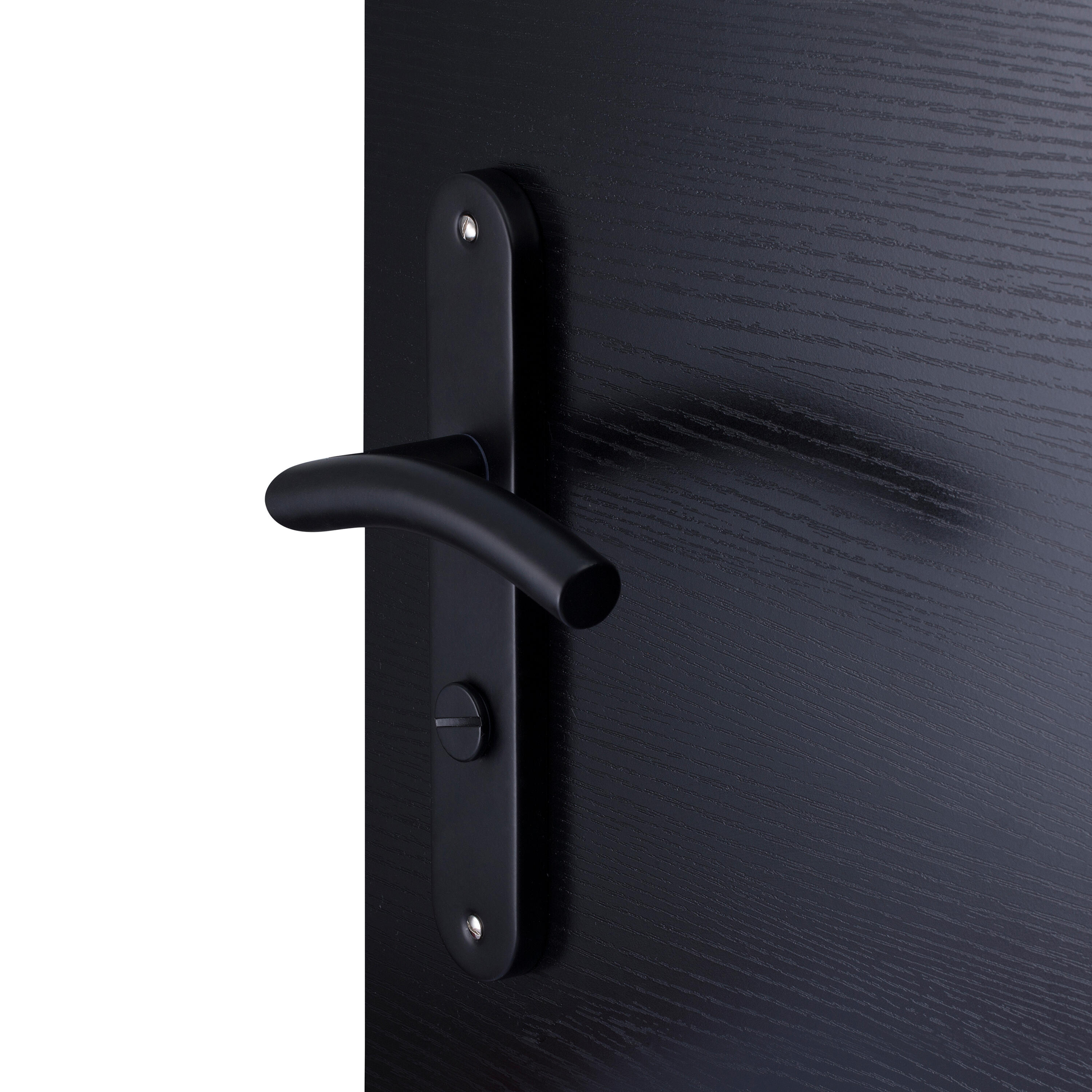 Deux poignées de porte sur plaque avec condamnation/décondamnation : taille de la plaque : 223 x 41 x 10 mm, longueur de la poignée : 132 mm, accessoires : 2 vis à joint bout à bout cassables, axe 7 x 7 d'une seule pièce, clé allen d'une seule pièce.