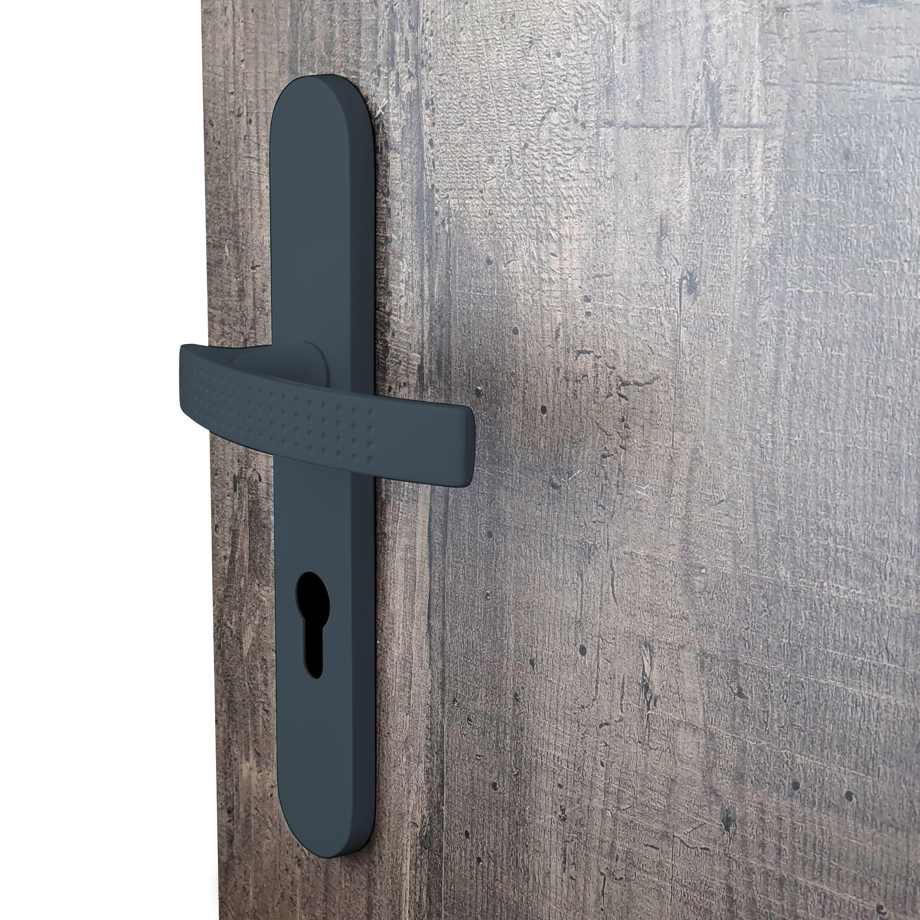 GARNITURE LOUNA ENTRAXE DE 195MM SUR PLAQUE DE 40MM AVEC PILIER SANS RESSORT DE RAPPEL PERCAGE CYLINDRE COULEUR GRIS RAL 7016