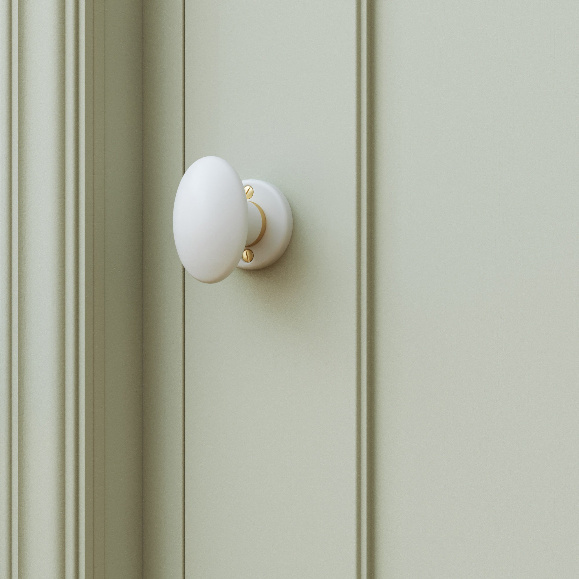 2 poignées sur rosace INSPIRE Gilda porcelaine blanc et laiton A10
