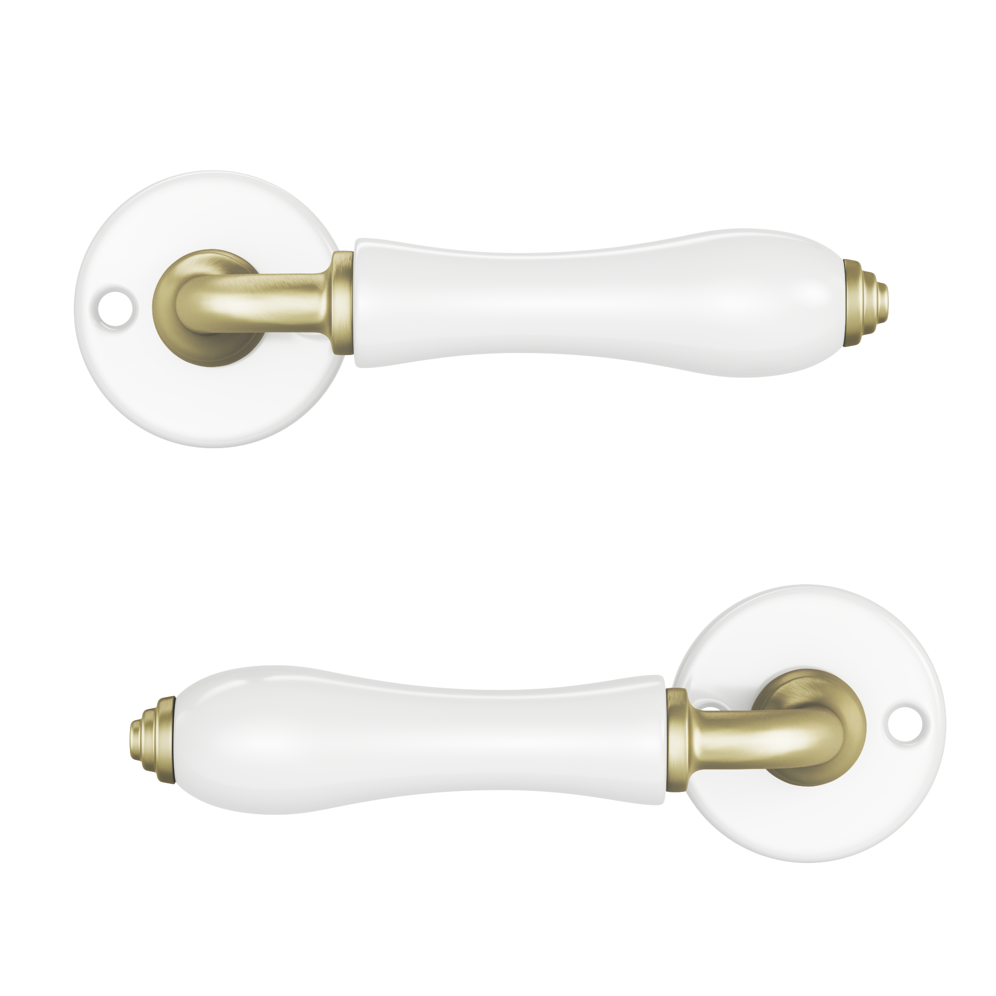2 poignées sur rosace INSPIRE Maya porcelaine blanc et laiton A10