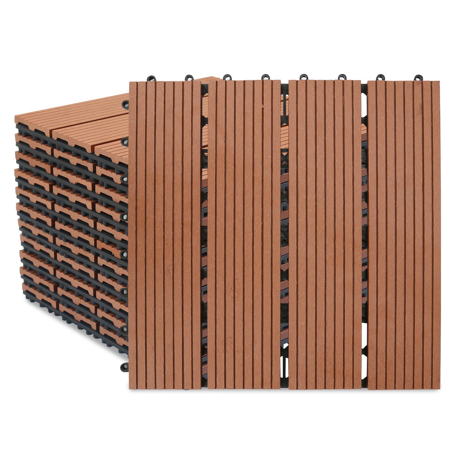 22x Dalles de terrasse WPC pour balcon jardin et allées système de pose par emboîtement entretien simple Marron 30x30CM