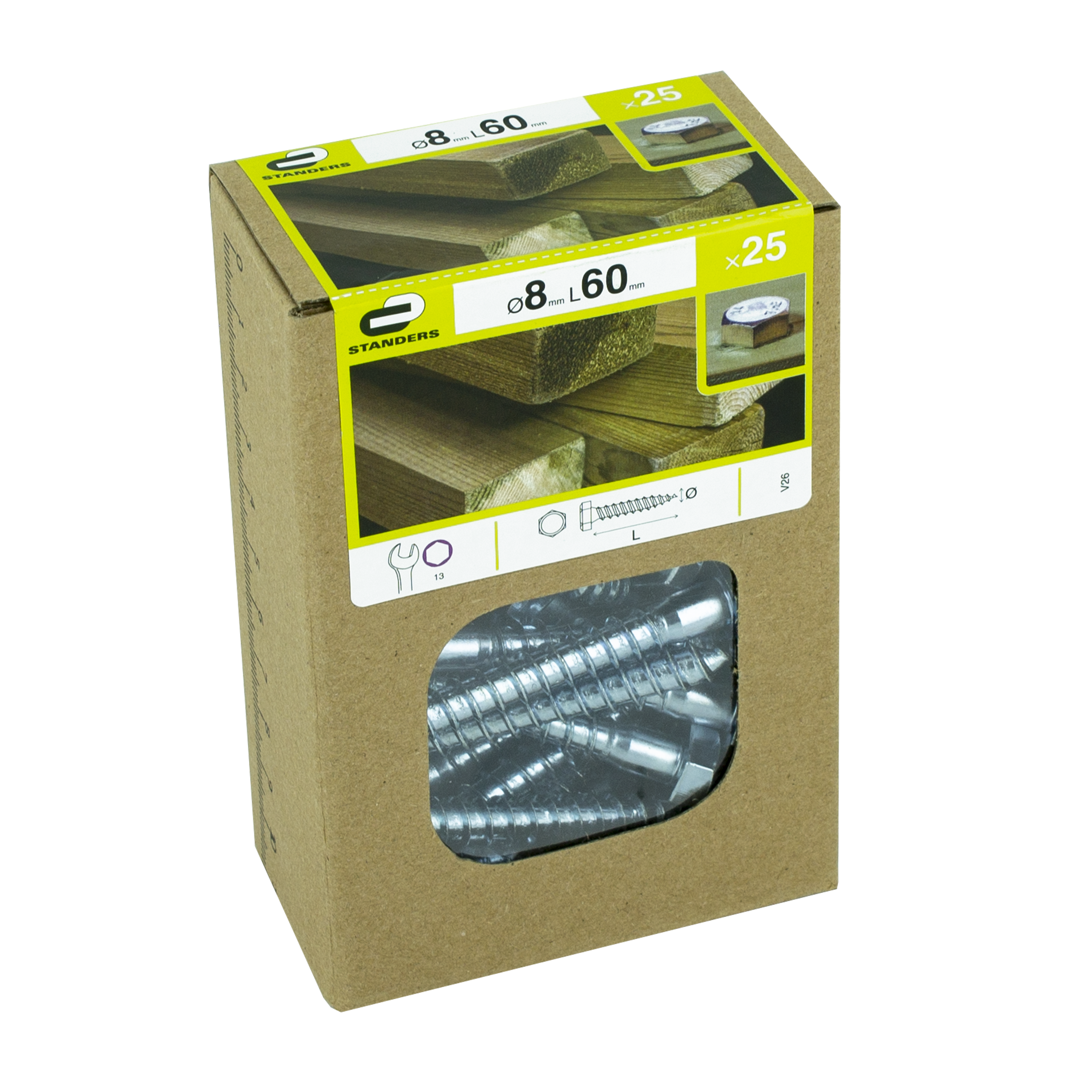 25 vis acier tête 6 pans hex STANDERS, Ø8 x L.60 mm
