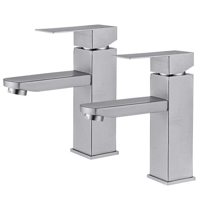 2x Robinet Salle de Bain Brossé Mitigeur Lavabo Gris Chaud & Froid Réglable, Robinet Lavabo avec Poignée Carré en Inox