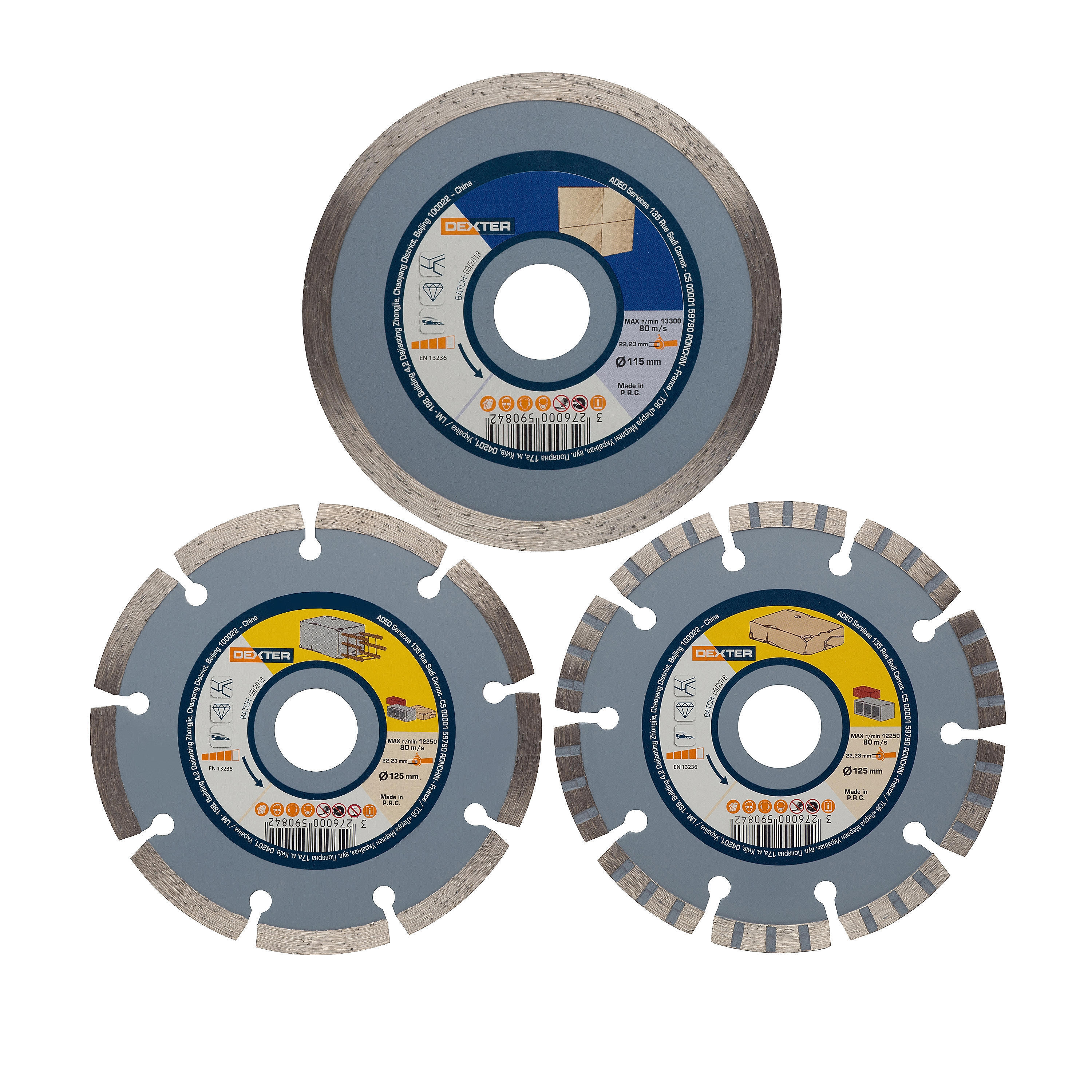3 disques diamant céramique/béton pour matériaux de construction DEXTER