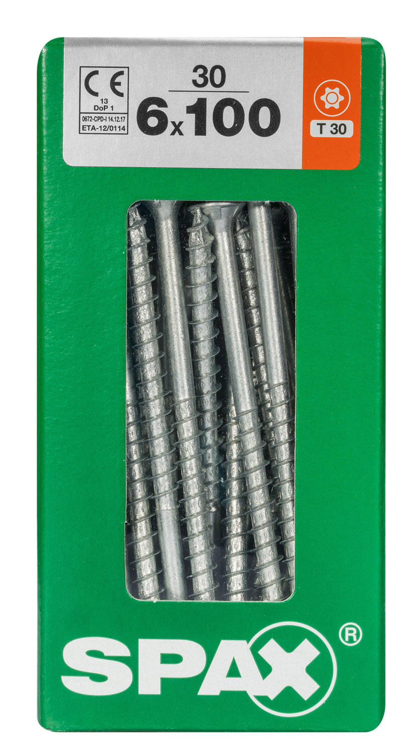 30 vis acier tête fraisée t-star+ SPAX, Ø6 x L.100 mm