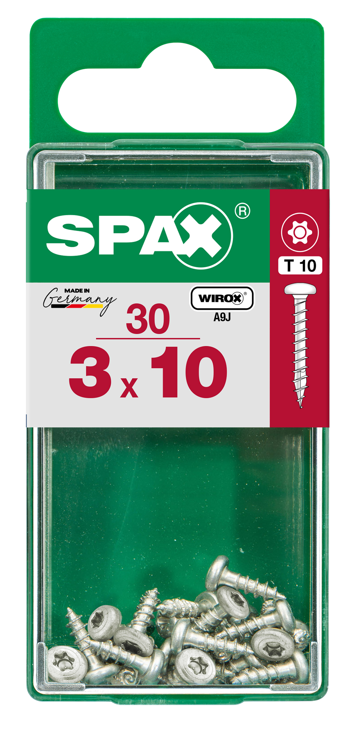 | Référence commerciale | SPAX t. ronde pz 3x10 WIROX 30 pc |