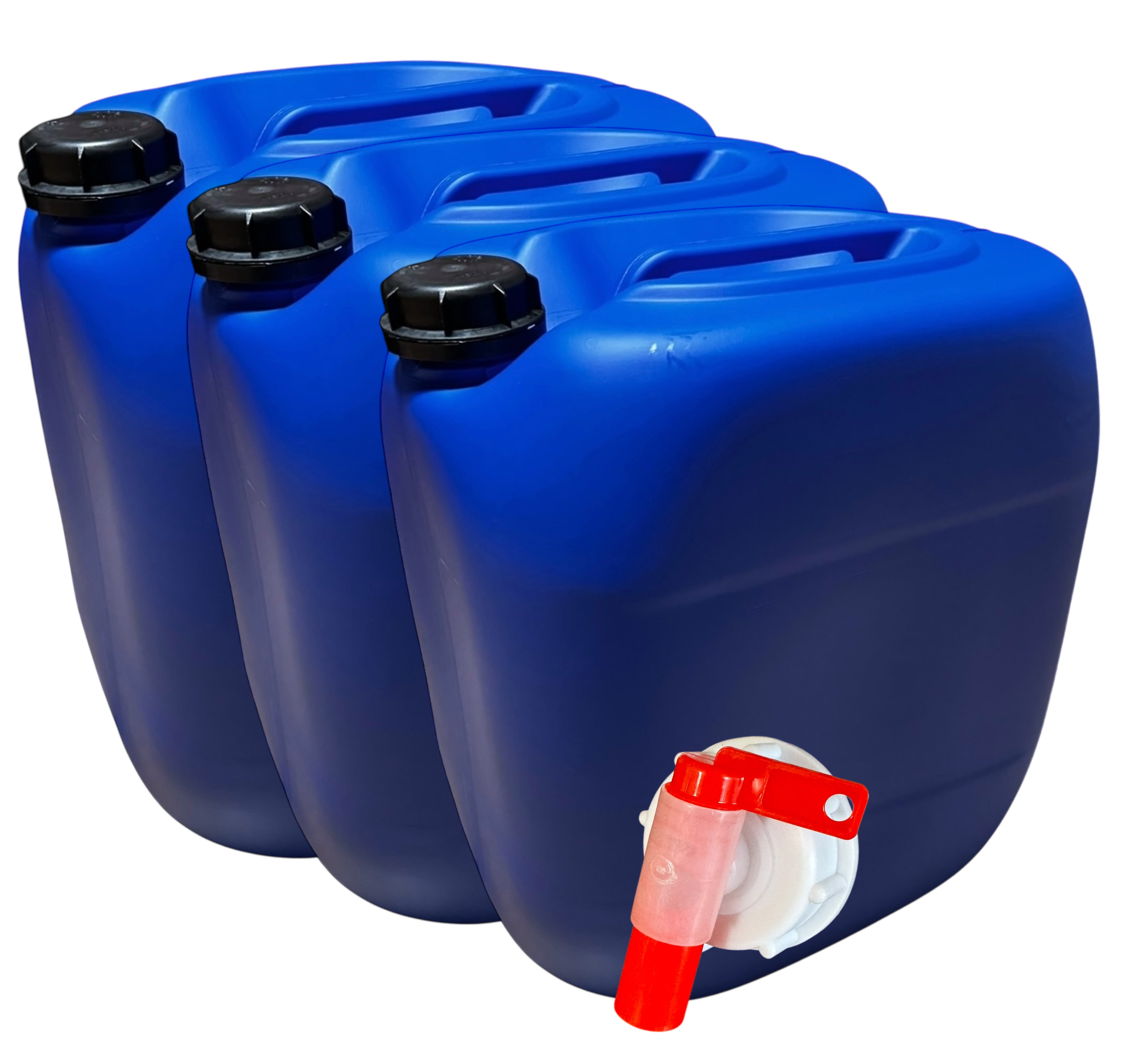 3x Bidon Jerrican Plastique 30 L litres Bleu Bouchon DIN 61 Liquides Alimentaires et Chimiques Ergonomique Empilable Réutilisable
