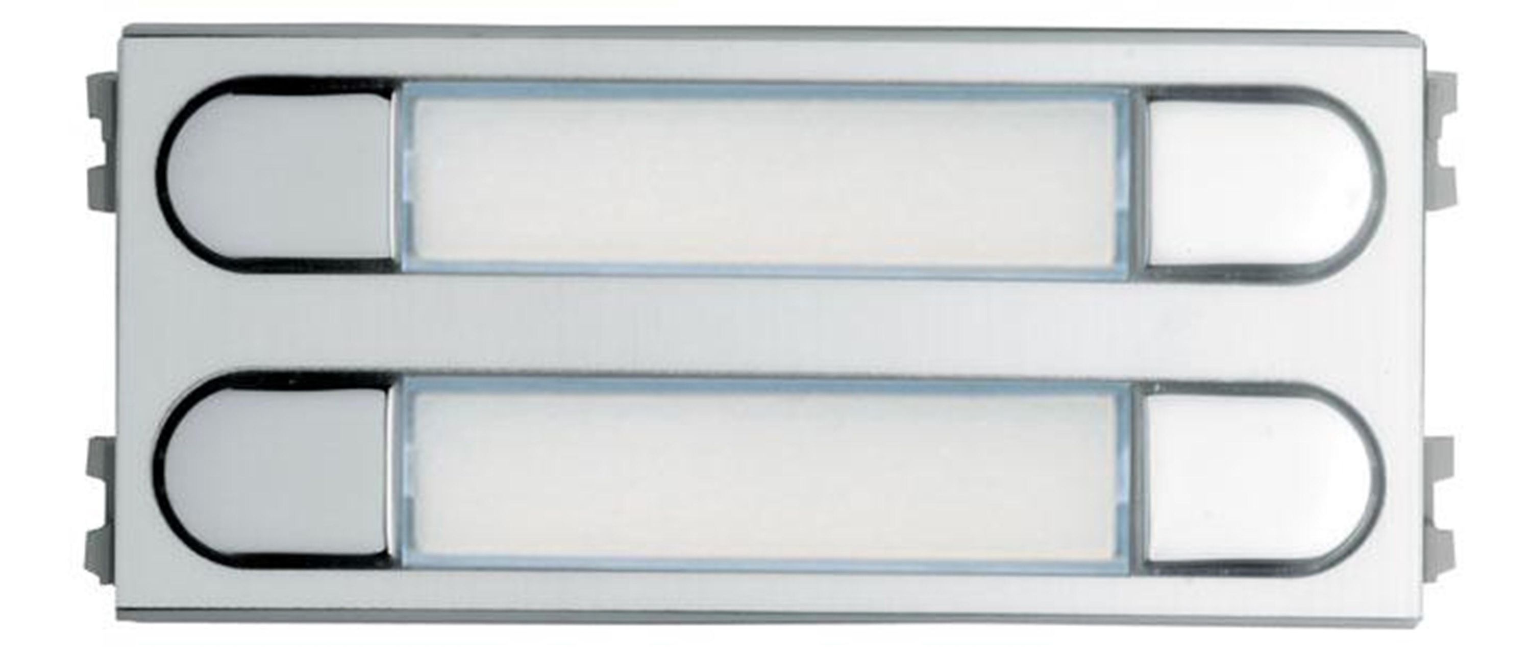 Module de plaques SKYLINE de 4 boutons (2 rangées x 2 colonnes) pour systèmes DUOX PLUS et VDS. Taille V. Façade en aluminium anodisé et boutons en zamak chromé. IP43. Dimensions module V : 105,2x47,5mm.