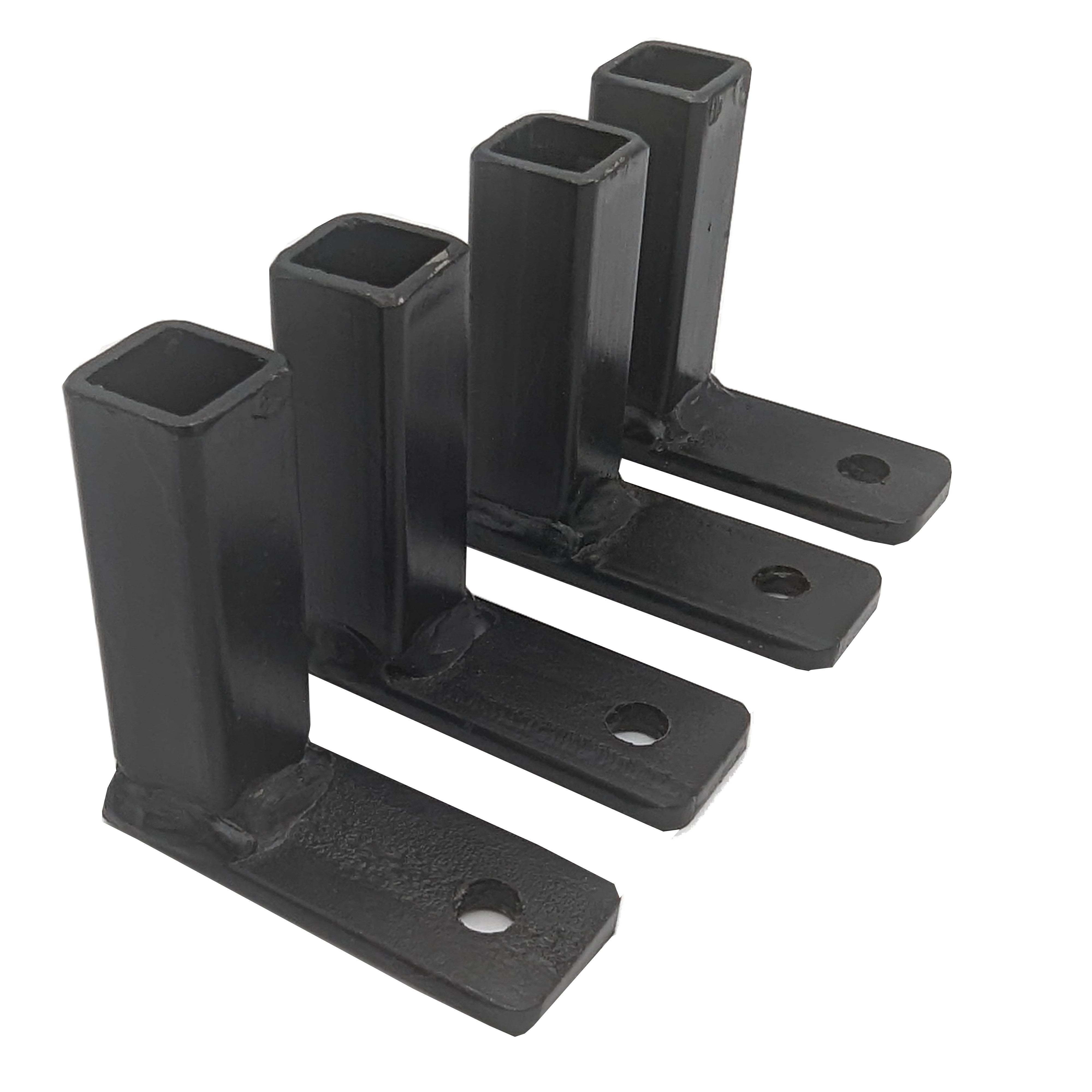• 4 platines percées de fixation en acier prépeinte d’une peinture d’apprêt noire. Il vous appartient de la peindre de deux couches de finition. • Cote intérieure du carré : 15 x 15 mm +/- 0,5 mm Profondeur : 60 mm +/- • Diamètre du trou de fixation : 8mm • Les rayures, les éclats superficiels ne peuvent être considérés comme vices de fabrication. • Vendues par 4 pièces. Jeu de 4 platines percées nécessaire à la fixation des grilles de défenses. Indispensables lors d'une pose en tableau par vissage, nos platines en acier pré peint vous permettront de fixer votre grille de défense rapidement et en toute sécurité. Dimension (L x l x h) : 65 x 20 x 65 mm +/- 0,5mm. Profondeur : 60mm. Trou de fixation : 8mm