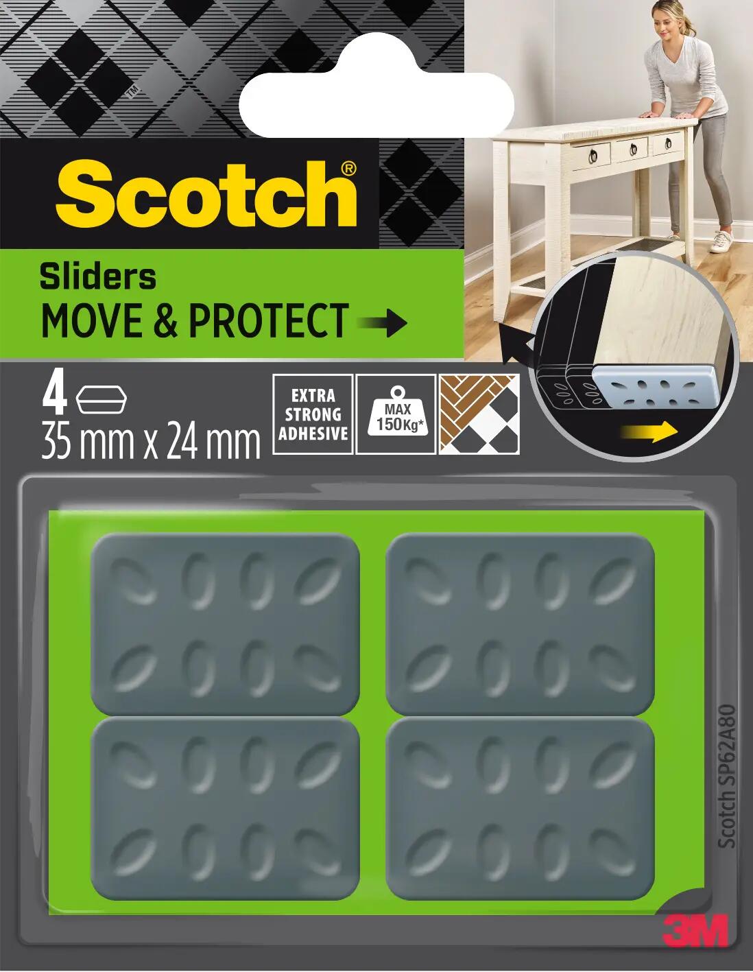 4 patins de pied de meuble en polypropylène auto-adhésif SCOTCH l.24 x 35 mm
