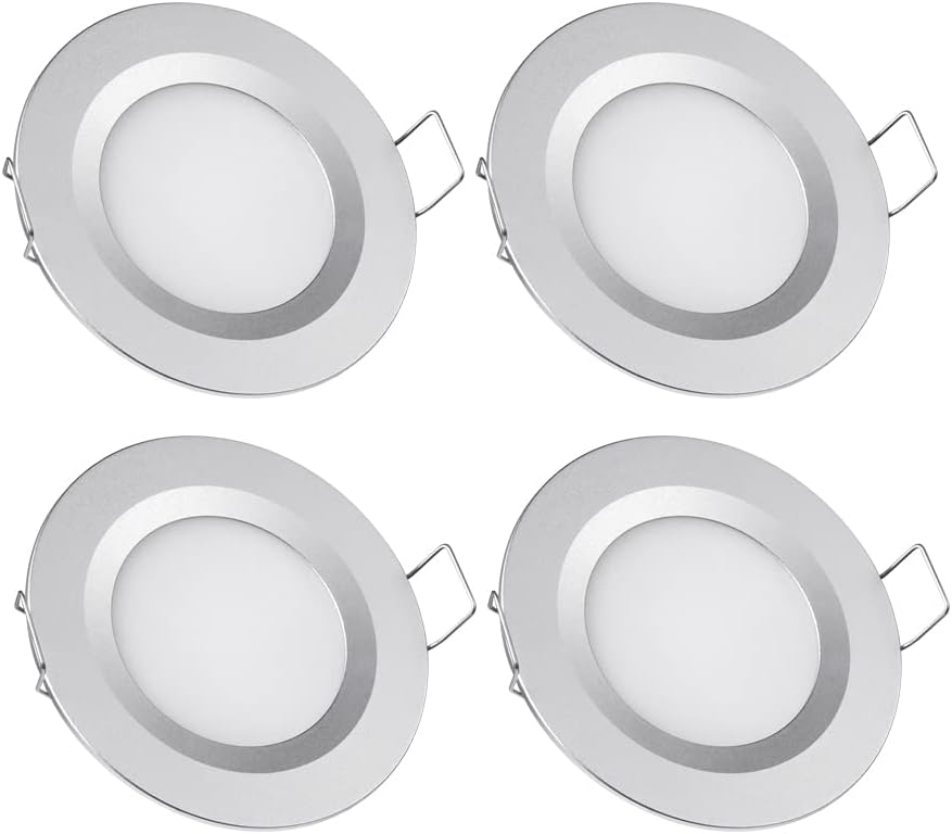 4 Spots LED Encastrables 12V – Blanc Froid 6400K, 3W – Idéal Camping-Car, Bateau, Van (Trou 58-65mm)