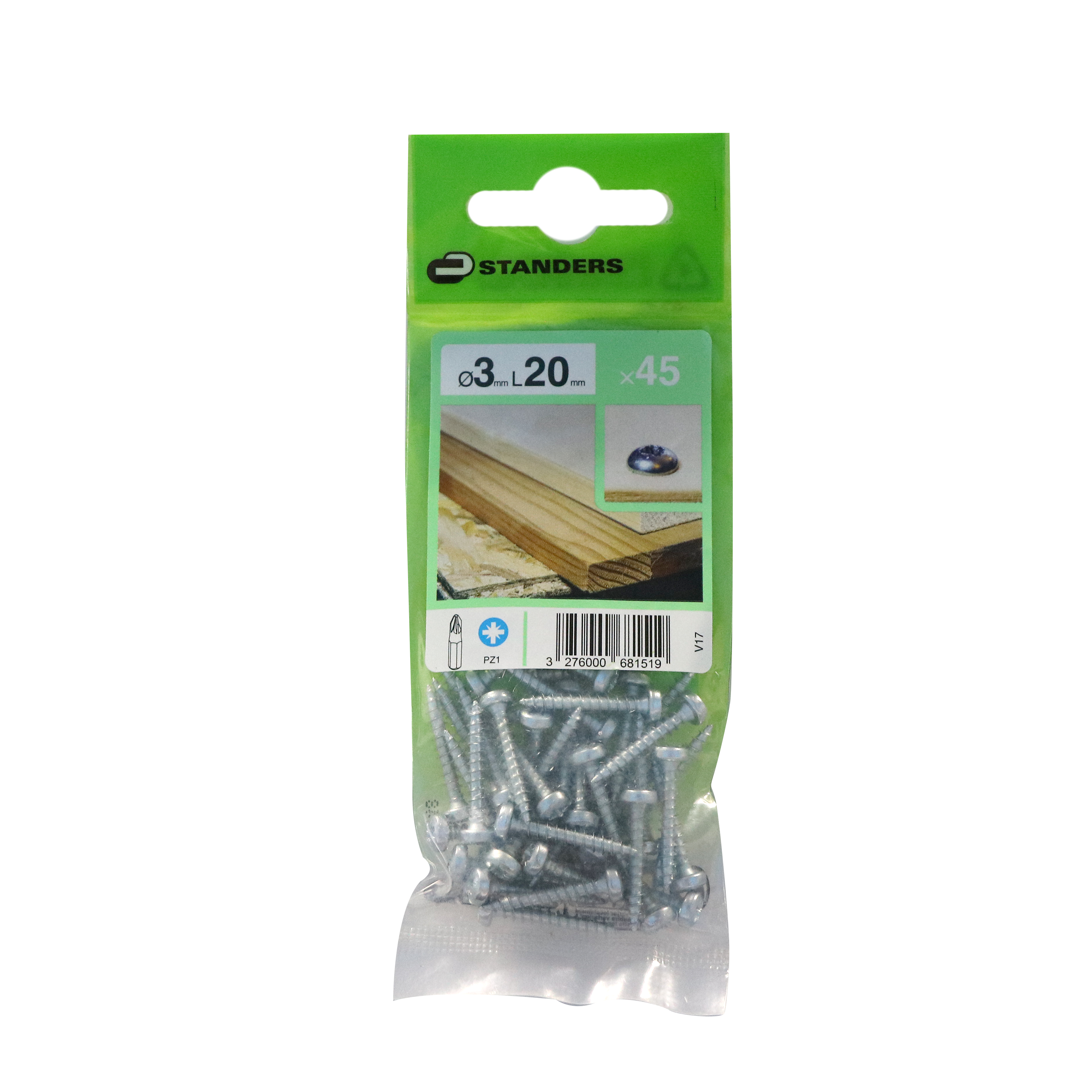 45 vis acier tête ronde pozidriv STANDERS, Ø3 x L.20 mm