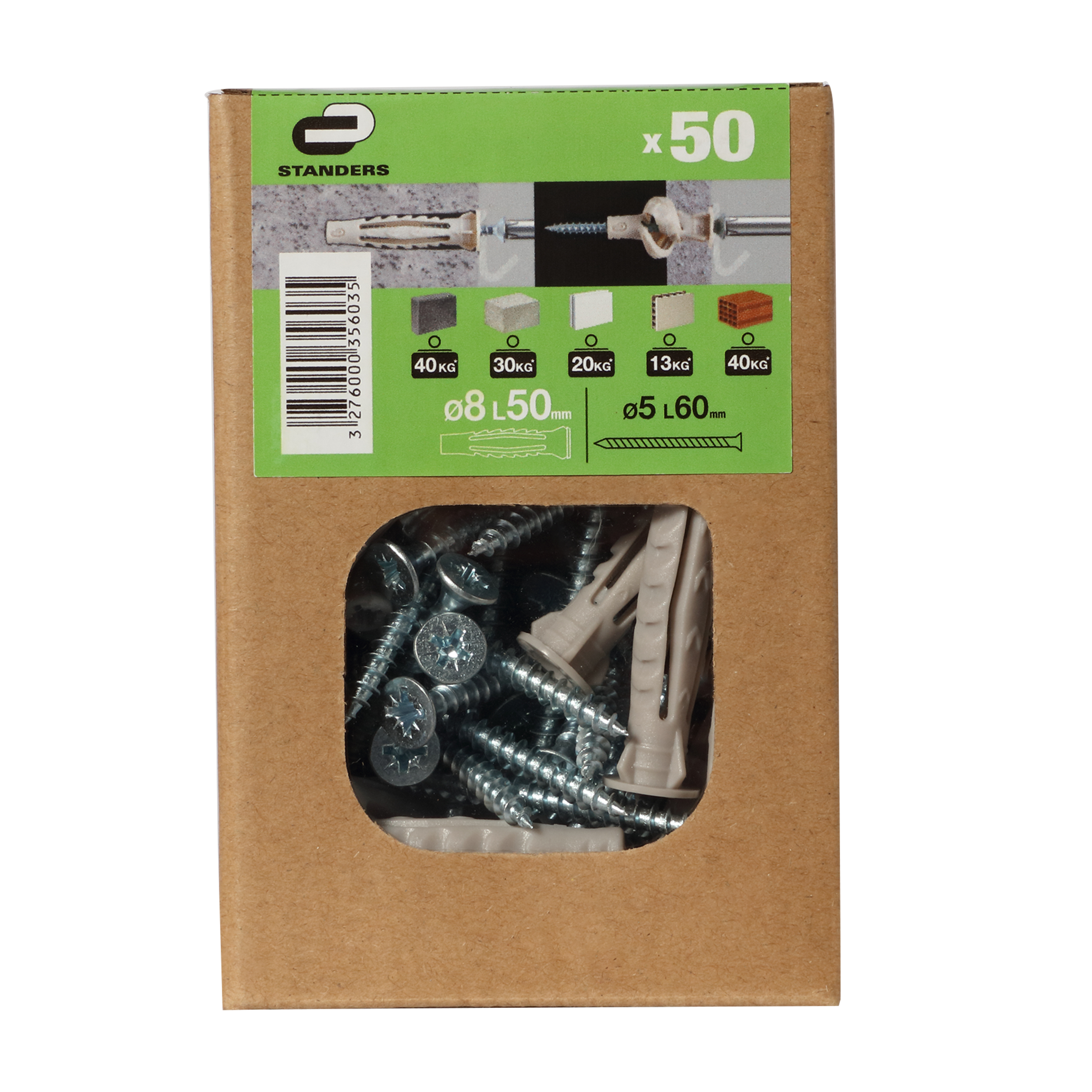 50 chevilles multi-matériaux et vis STANDERS, Diam.8 x L.50mm