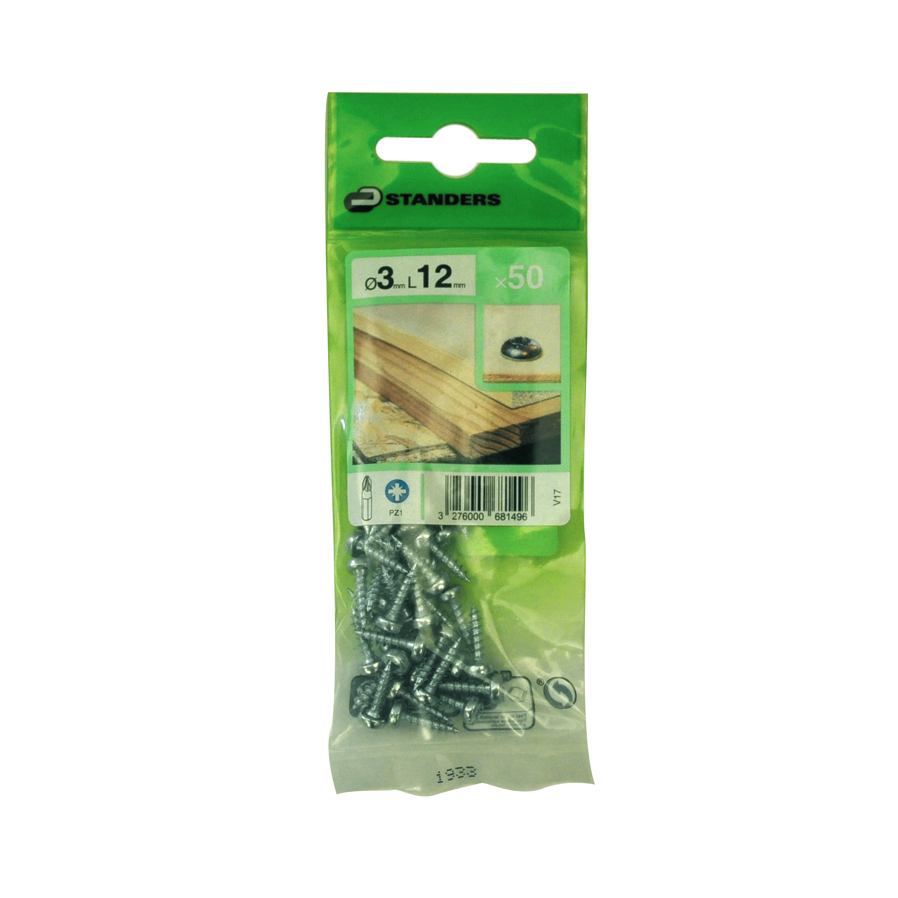 Pack de 50 Vis Standers auto-affûtantes et autoperceuses à tête ronde et empreinte Pozidriv pour bois. Fabriqué en acier avec une finition zinguée. Dimensions : 3 x 12 mm (diamètre x longueur).